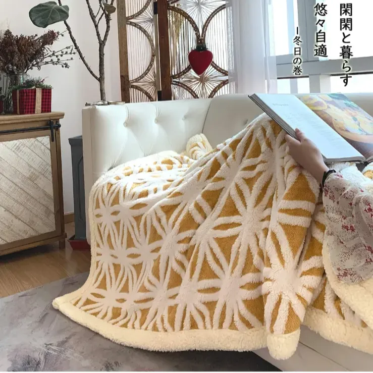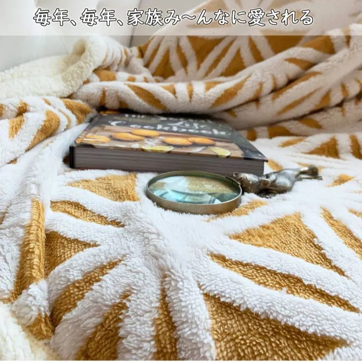 sledar(スレダー) 毛布 掛け毛布 ひざ掛け 羽織れる 大判 発熱二枚合わせ パイル シープ調 ふわふわ 丸洗いOK 抗菌防臭 防ダニ加工 北欧風 プレゼント 秋冬 (130x160cm,マスタード)