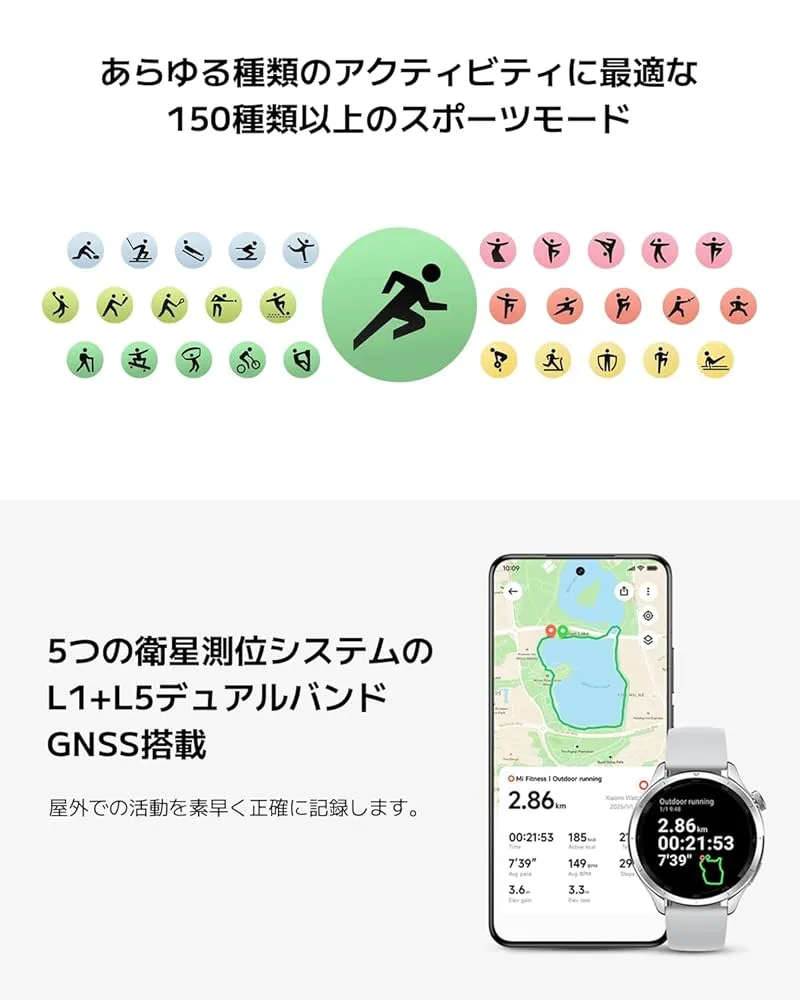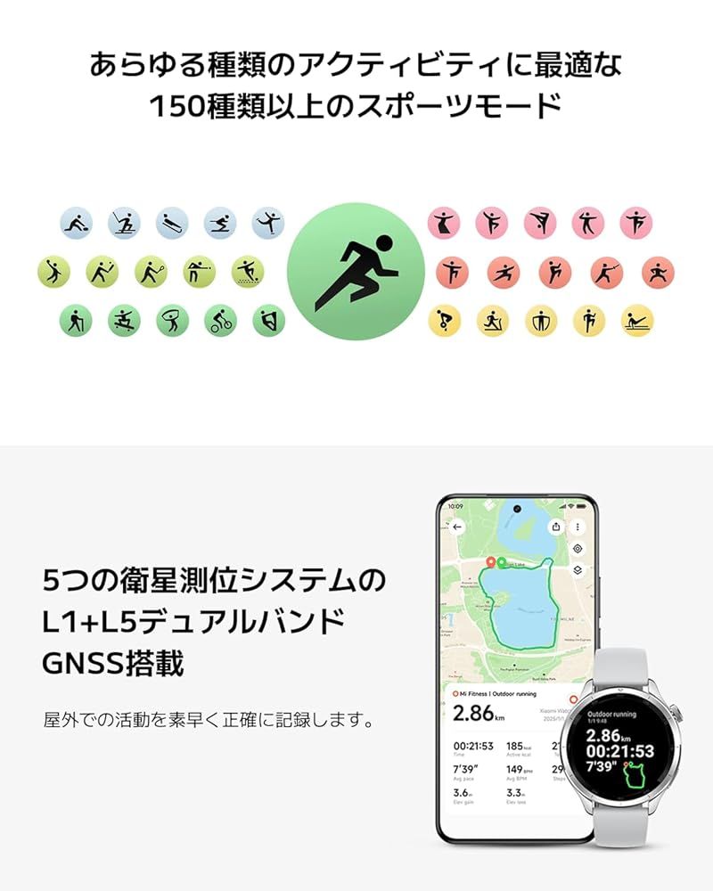 ✅ワンタップで健康管理や150種類以上のスポーツモードにアクセス:新開発アルゴリズムで心拍モニタリング精度が98.2%向上。心拍数、血中酸素、ストレス値などの総合的なヘルスケア機能を強化しました。GPS搭載でスマホなしでもワークアウトの経路・距離を測定可能。150以上のスポーツモードとランニングガイドで多様な運動をサポート。