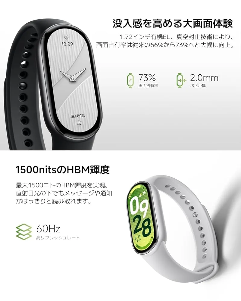 Xiaomi Smart Band 10 スマートウォッチ 1.72大画面体験 21日間連続使用 輝度1500nits 視認性 強化されたスイミングモード 9軸モーションセンサー搭載