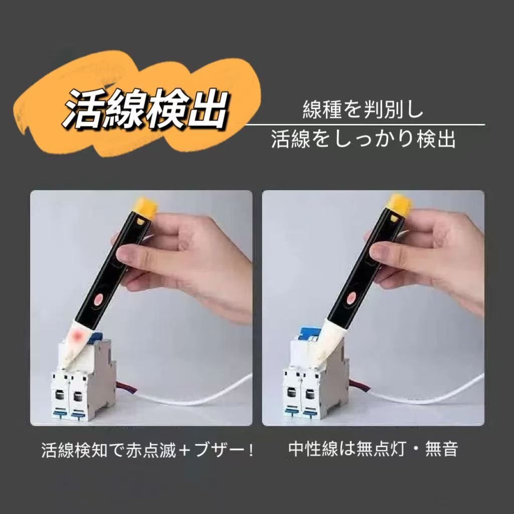 【ペンタイプで非接触の安全ツール】 ・非接触設計で感電の危険がなく安全です。 ・ペンタイプで持ちやすい設計。 ・音と光でわかりやすくお知らせします。 ・LEDライト付きで暗所でも安全に。 ・クリップタイプでポケットから落としません。