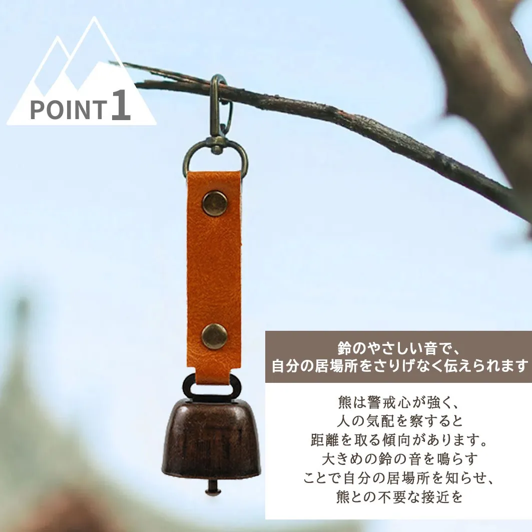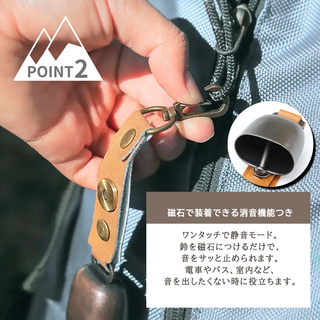 熊よけ鈴 くま クマ 鈴 ベル 熊鈴 熊避け 消音機能付き カラビナ付き ストラップ キーホルダー 登山 対策 グッズ キャンプ 遭難 鹿 ハイキング 農作業 セット アウトドア PUレザー 鉄 音量 動物 山菜取り 渓流釣り 吊り下げ フック バッグ 鞄