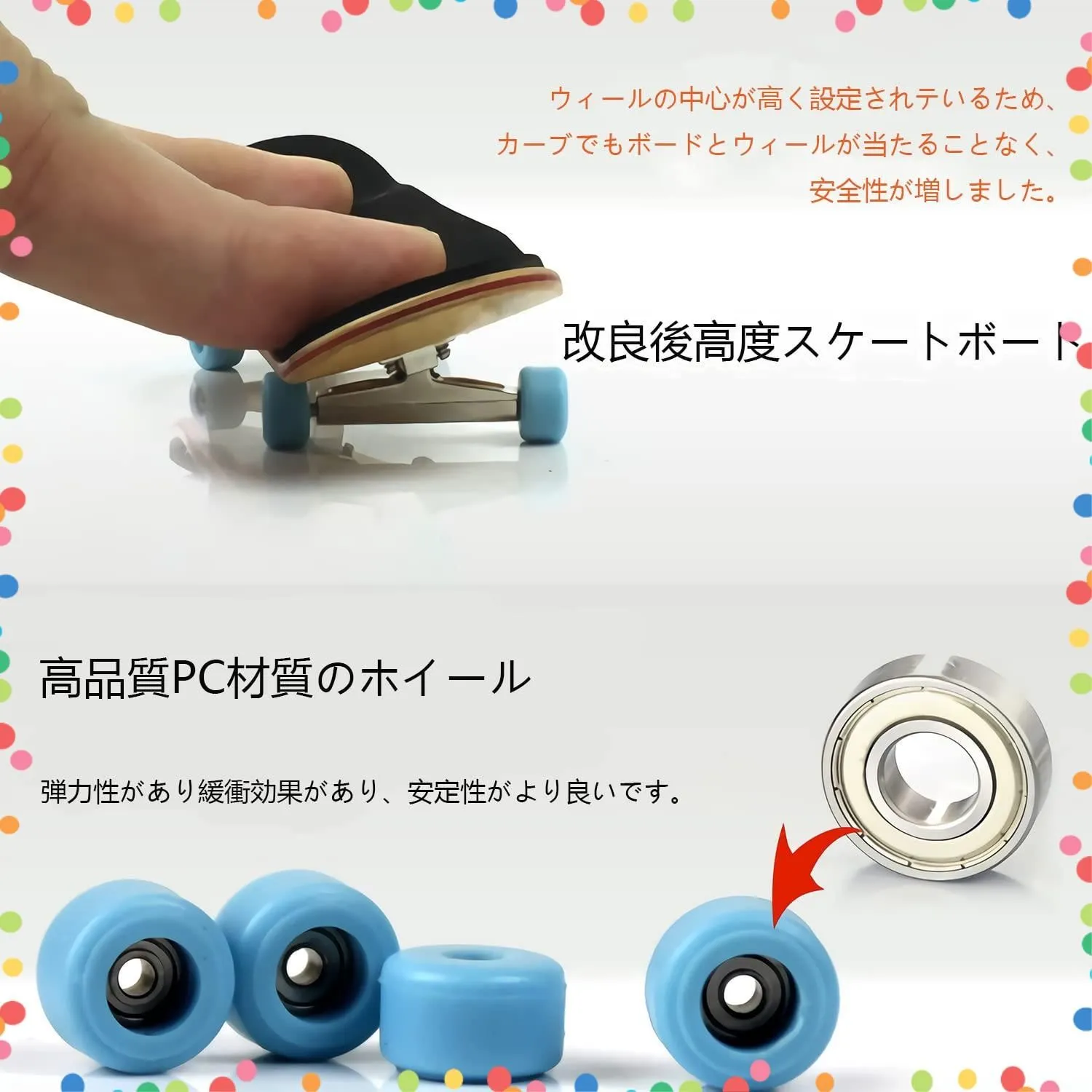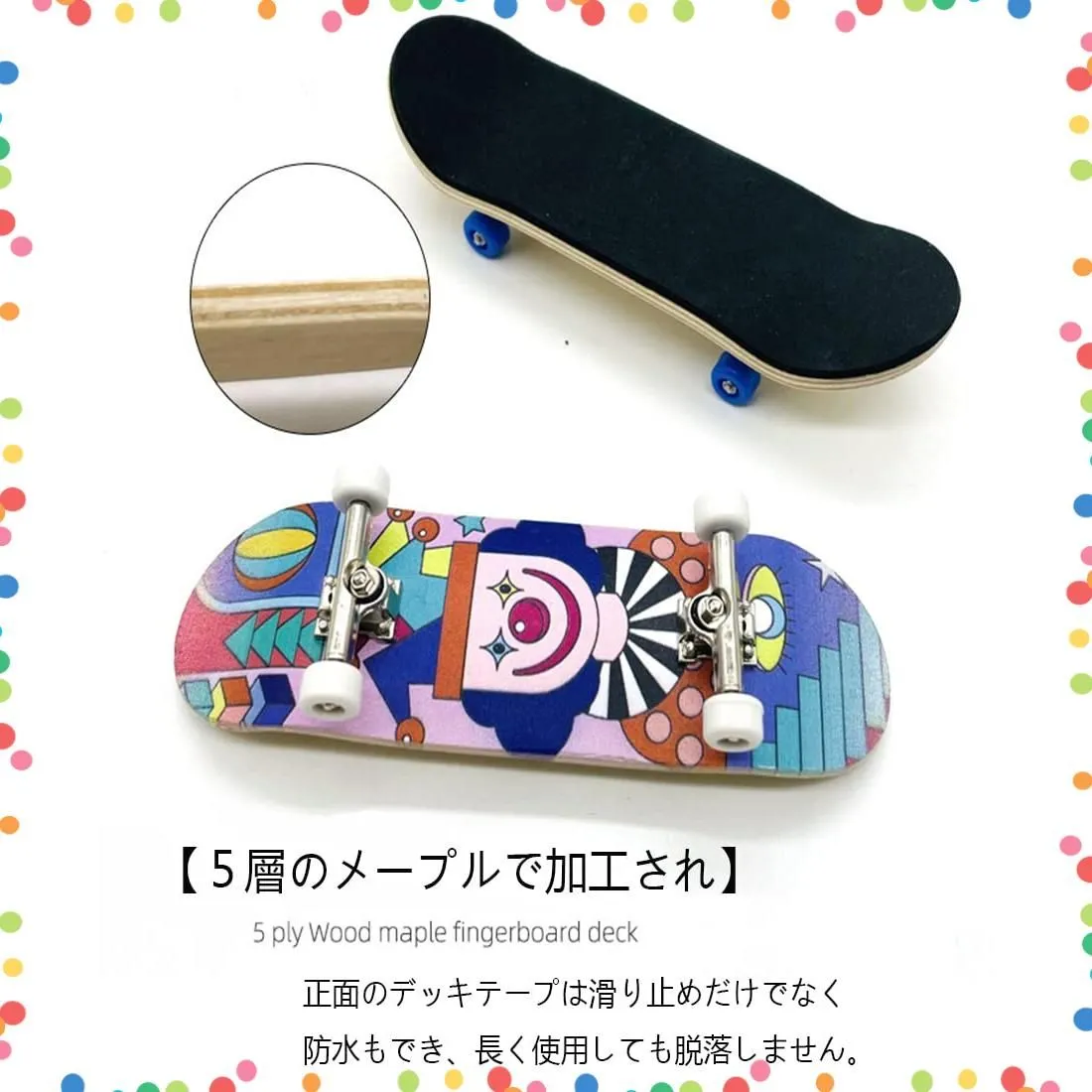 【耐久性メープルデッキ】デッキの表面には滑り止めがあるので、安全性を持っている、大人でも子供でも使えます。持ち運びが簡単で便利です。流暢な体験を提供し、効果的に摩擦を減らし、指スケートボードの寿命を延ばします。
