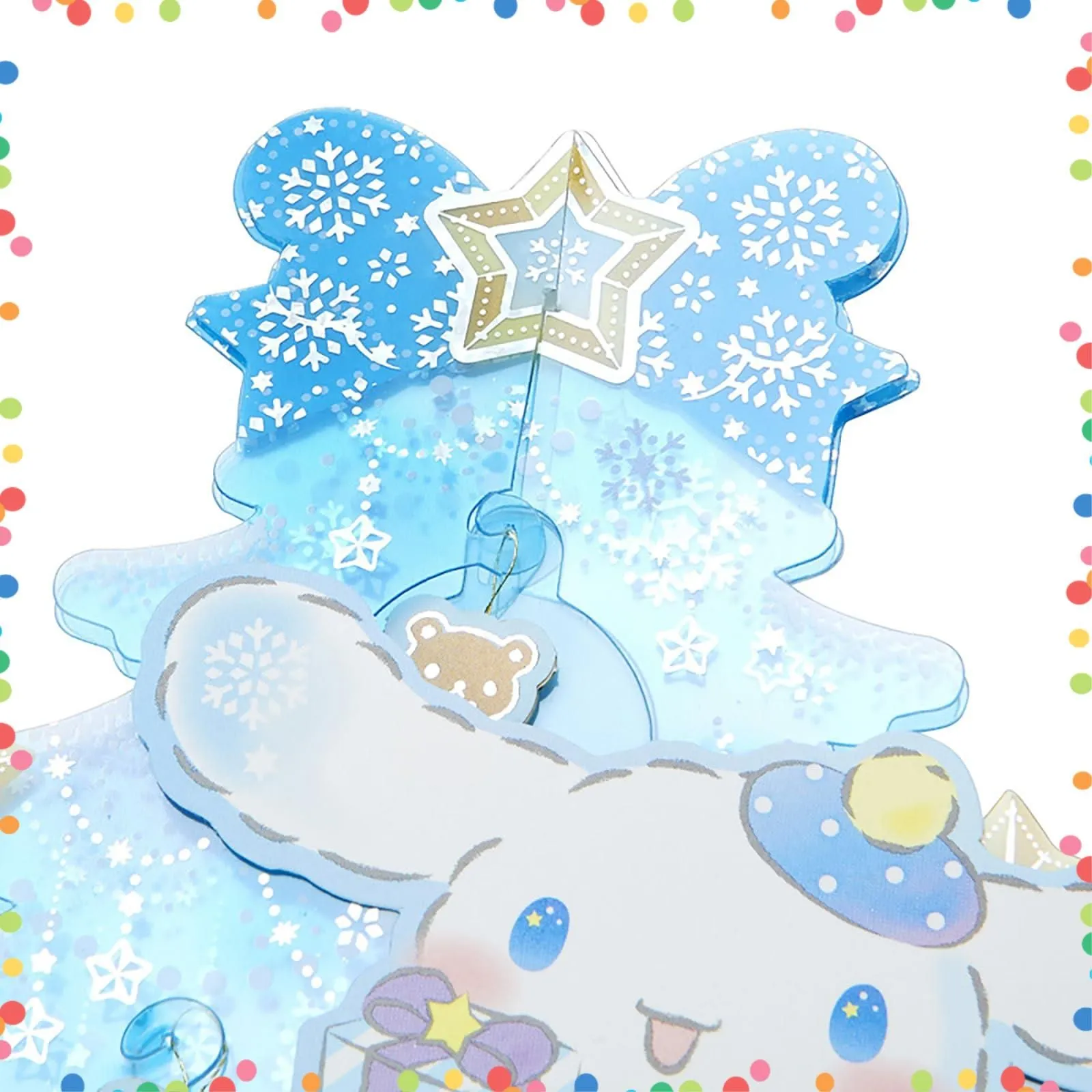 ・14.5x21.5x0.5cm ・立体ダイカットカード ・小さなオーナメントがゆらゆら揺れる、シナモロールの立体クリスマスツリーカードです。透明素材のツリーに銀ホログラム加工が施された華やかな仕上がりです。立てて飾れます。付属のミニカードにメッセージが書けます。 ・郵便料金(国内)は120円です。 ・c2023 SANRIO CO., LTD.