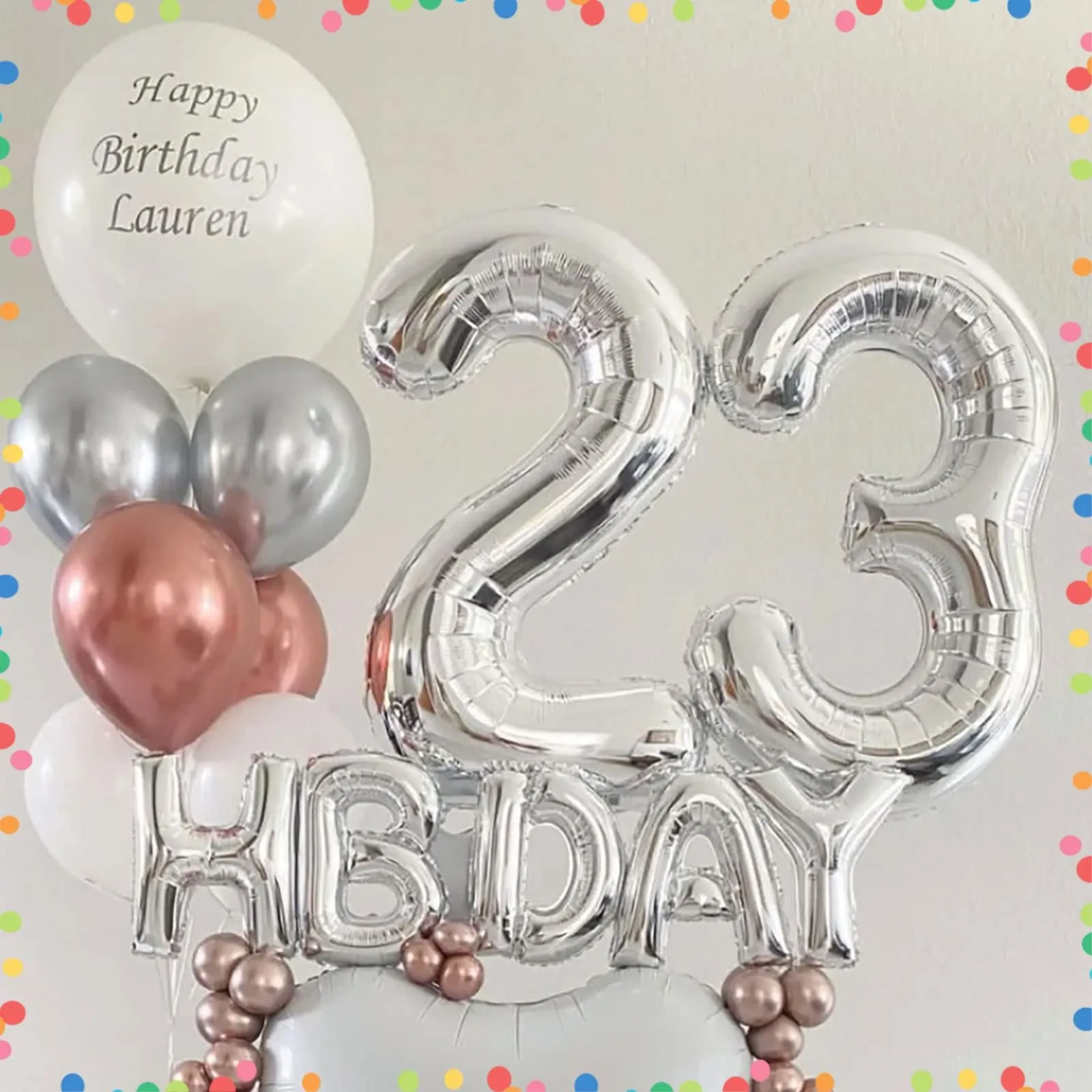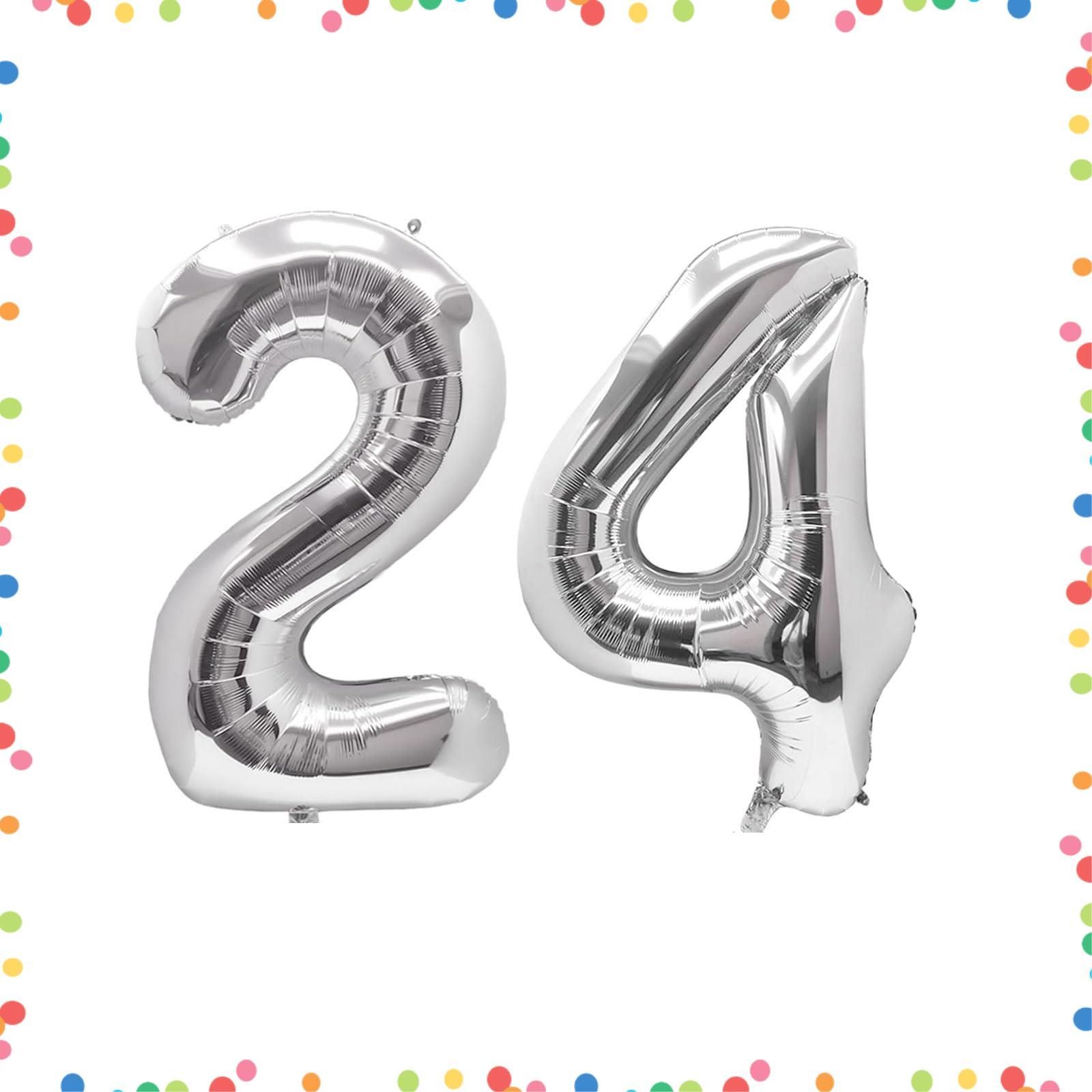 【人気商品】バルーン 2PCS ナンバー 数字 バルーン 24 ハッピーバースデー バルーン 24歳 誕生日 誕生日 数字 バルーン 32インチ 約80cm シルバー アルミ風船 結婚式 記念日 お祝い