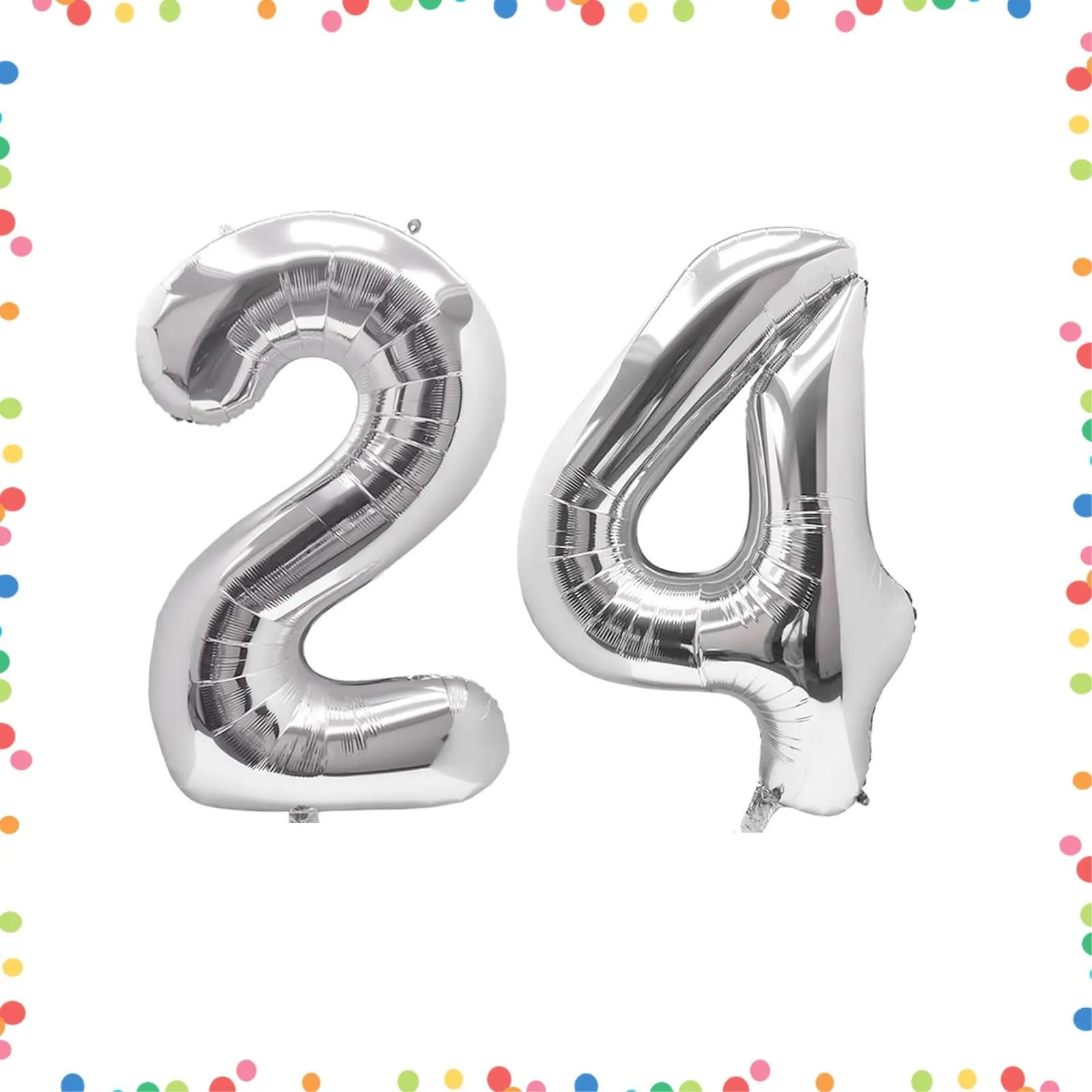 シルバー 誕生日 数字 バルーン 2PCS ナンバー バルーン 24 ハッピーバースデー バルーン 24歳 誕生日 数字 バルーン 32インチ 約80cm アルミ風船 結婚式 記念日 お祝い