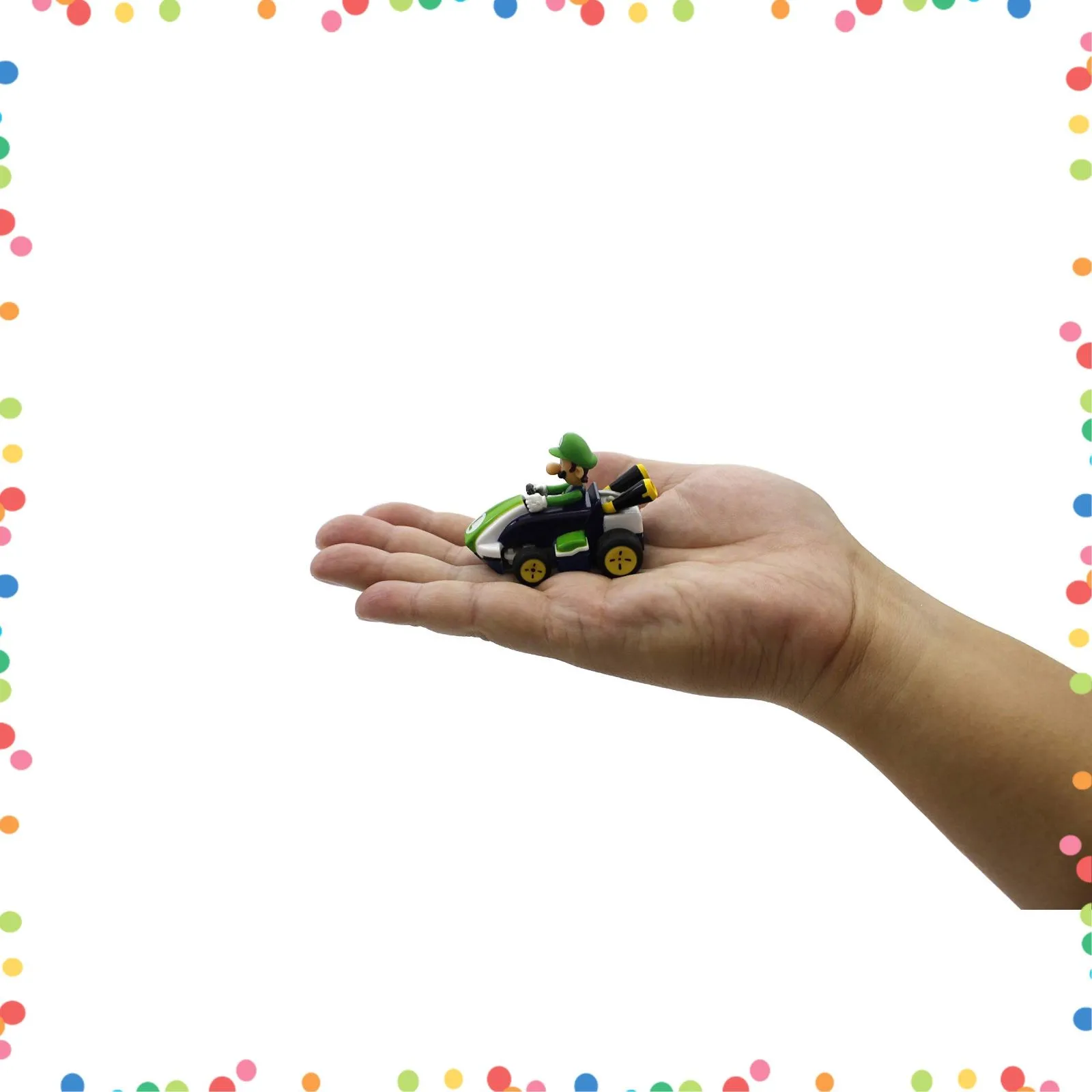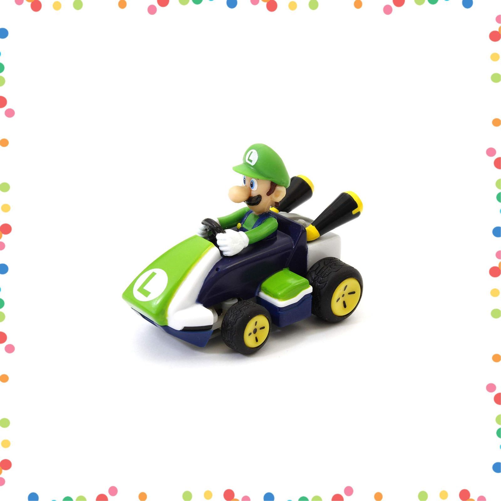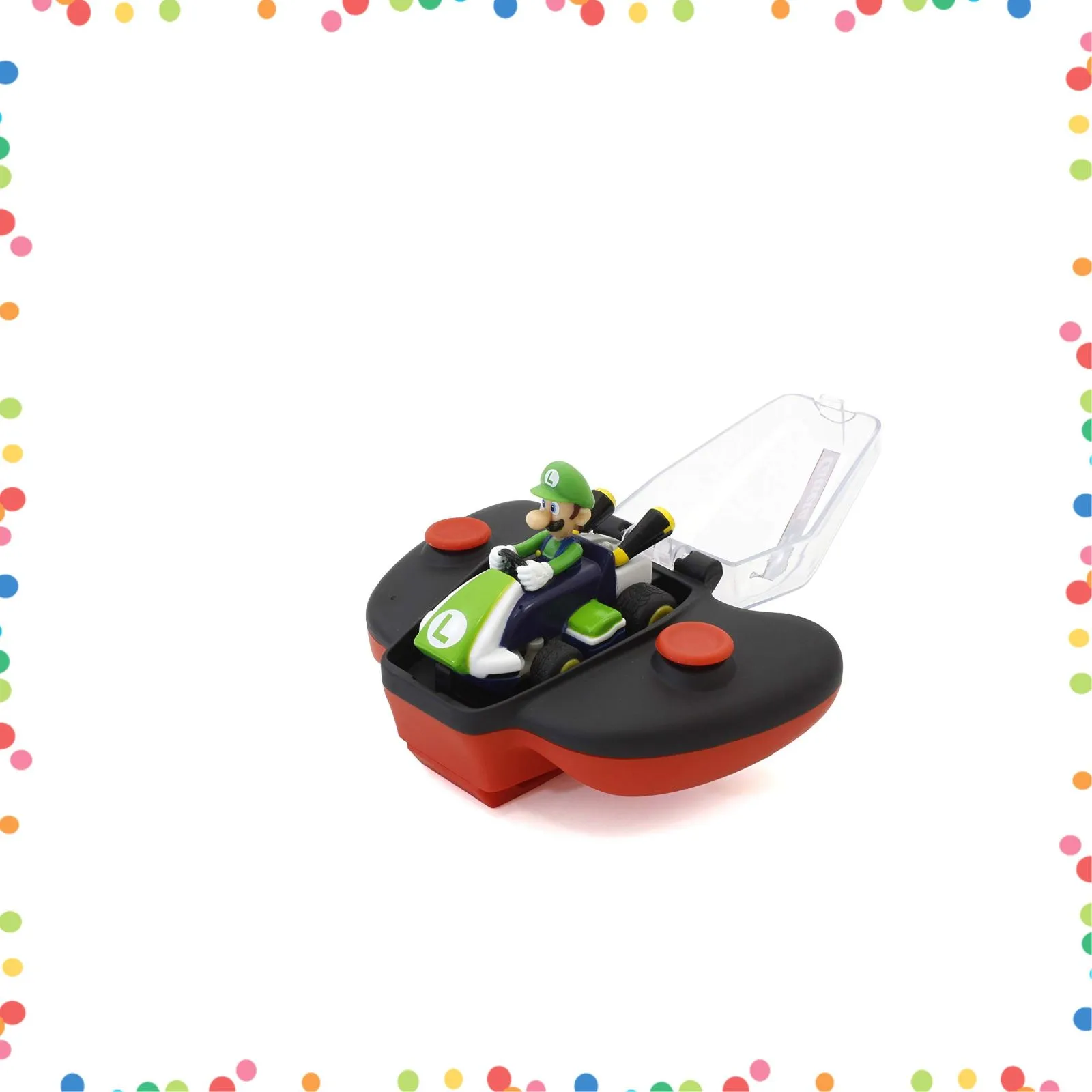 全長7cmのマリオカートのミニRCカー「ルイージ」の登場です。初めてRCを操作する方でも簡単な操作モデル、前後・左右でのシンプルな操作でだれでも簡単に遊ぶことができます。また、充電池内蔵、テスト用単4電池同梱で買ってすぐに遊べます。コントローラーにマシンを収納できて、持ち運びに便利なフック付! 2.4GHz仕様コントローラーで最大10台同時走行可能!最高時速5km!家族や仲間で走らせよう。