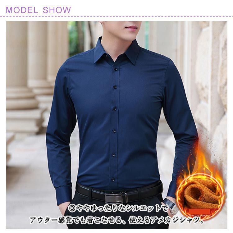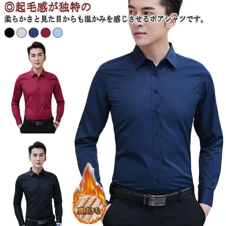 メンズ ワイシャツ Yシャツ ビジネス 裏起毛 ビジネスシャツ 長袖 スリム 防寒シャツ 通勤 トップス 裏ボアシャツ 厚手 細身 秋冬 スリムワイシャツ 長袖 ボタンダウン 裏ボア 防寒 細身 あっ#lj100136