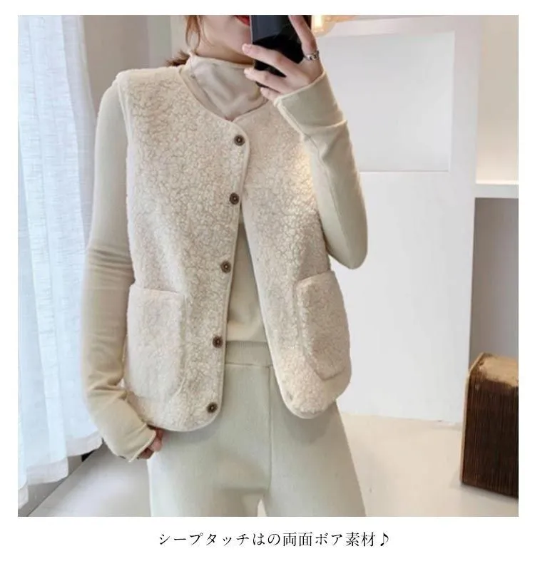 ボアベスト レディース ジレ ボア ベスト ロングベスト 秋 冬 春 ボアジャケット ジャケット 前開き ロング丈 トップス もこもこ ノースリーブ アウター 無地 襟なし 防寒 暖かい 羽織り ふわ#xk3610