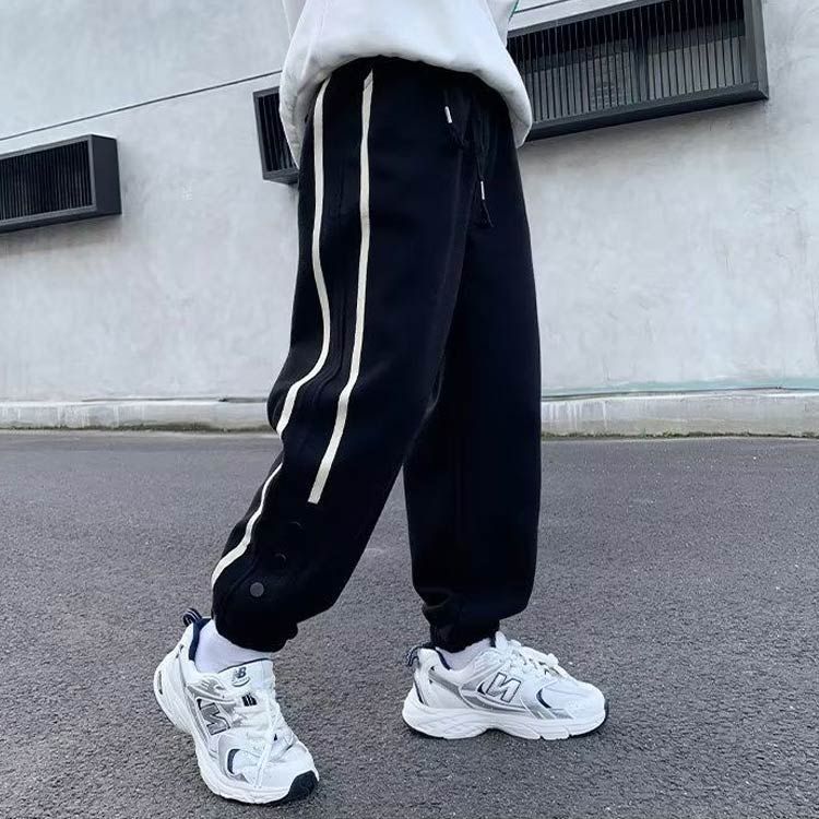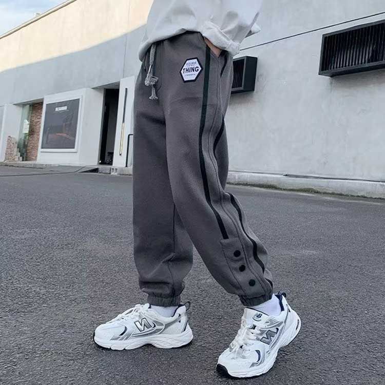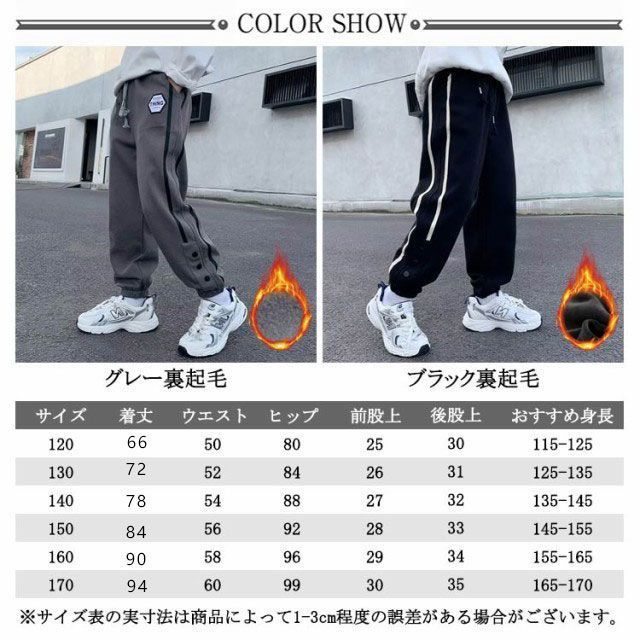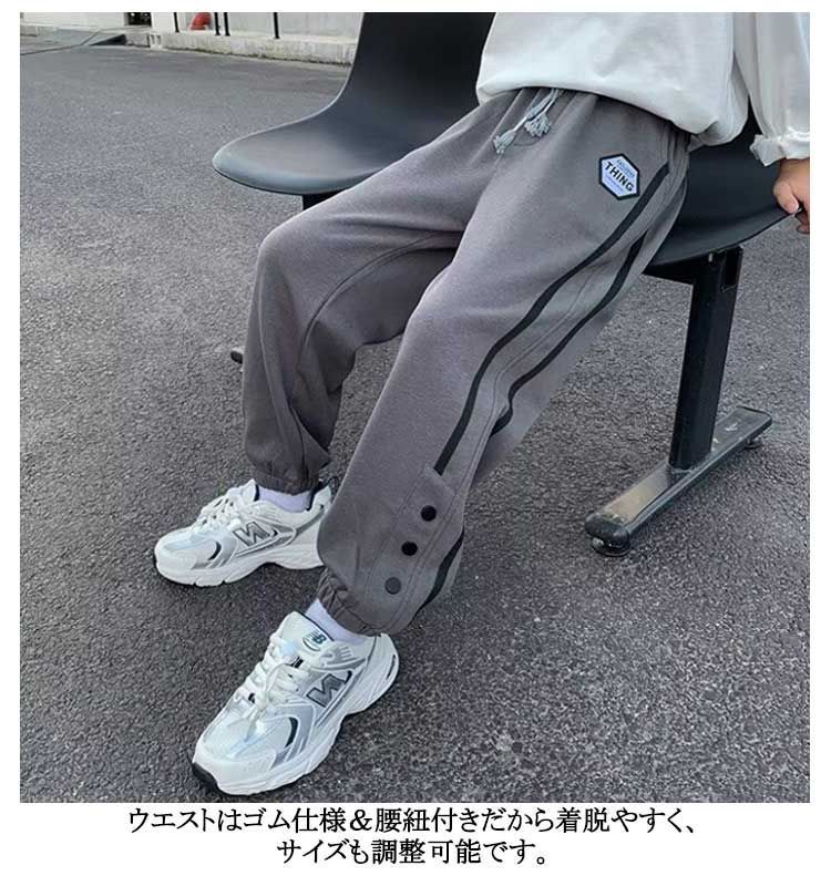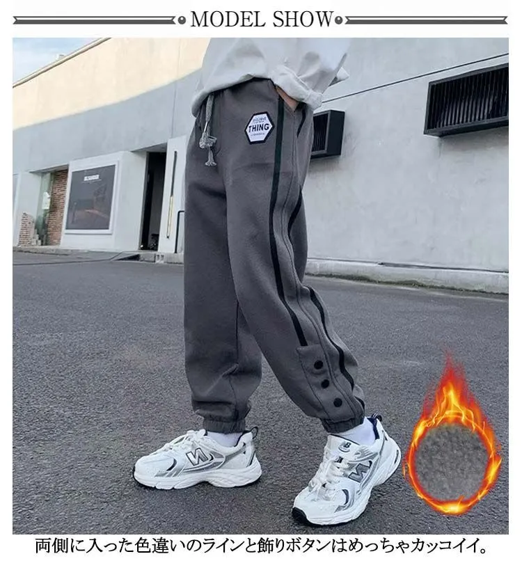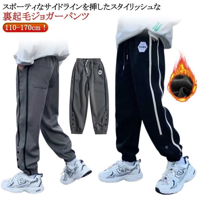 110-170cm!スポーティなサイドラインを挿したスタイリッシュな裏起毛ジョガーパンツ。