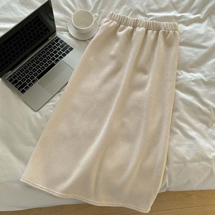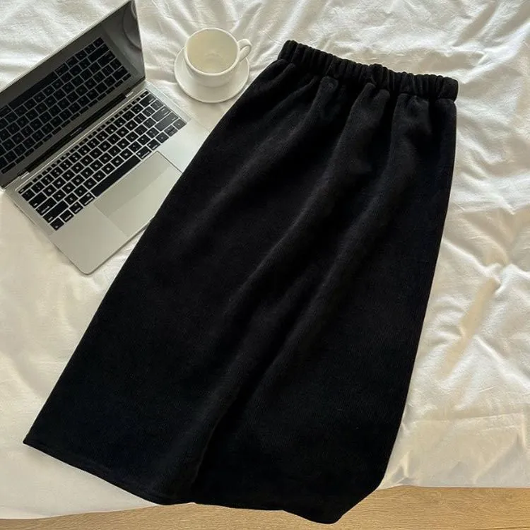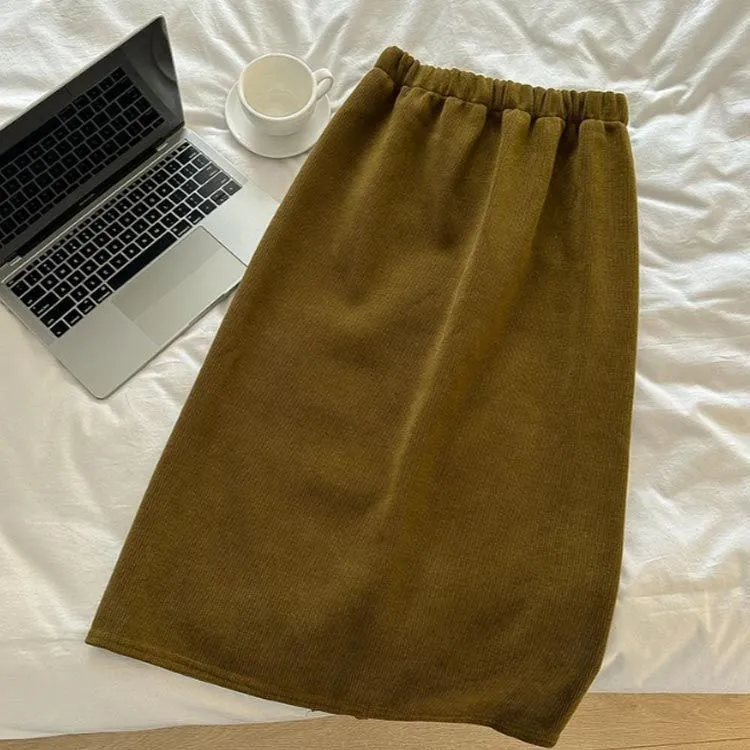 シンプルさと上品な抜け感を兼ね備えたコーデュロイタイトスカート。