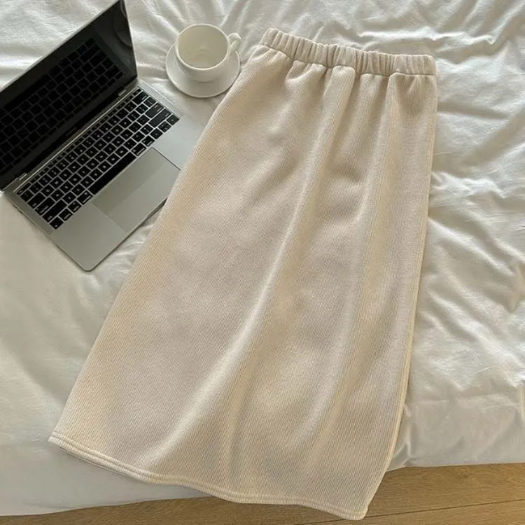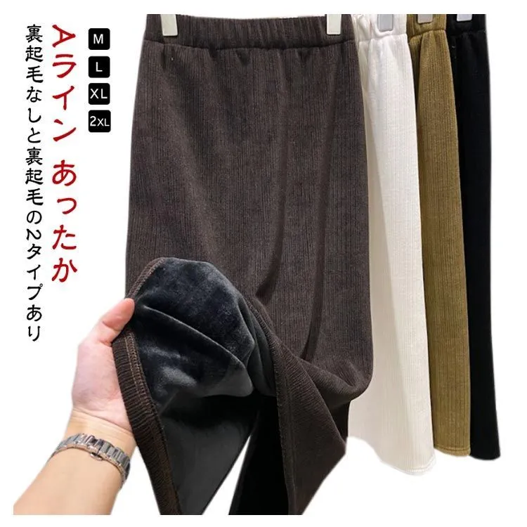 黒 レディース 冬 スカート タイト 大人 Aライン レディース ミモレ丈 スカート 裏起毛 ハイウエスト ウエストゴム スカート ロングスカート 秋冬 スリット あったか レディース スリット タイ#yuzuc597470