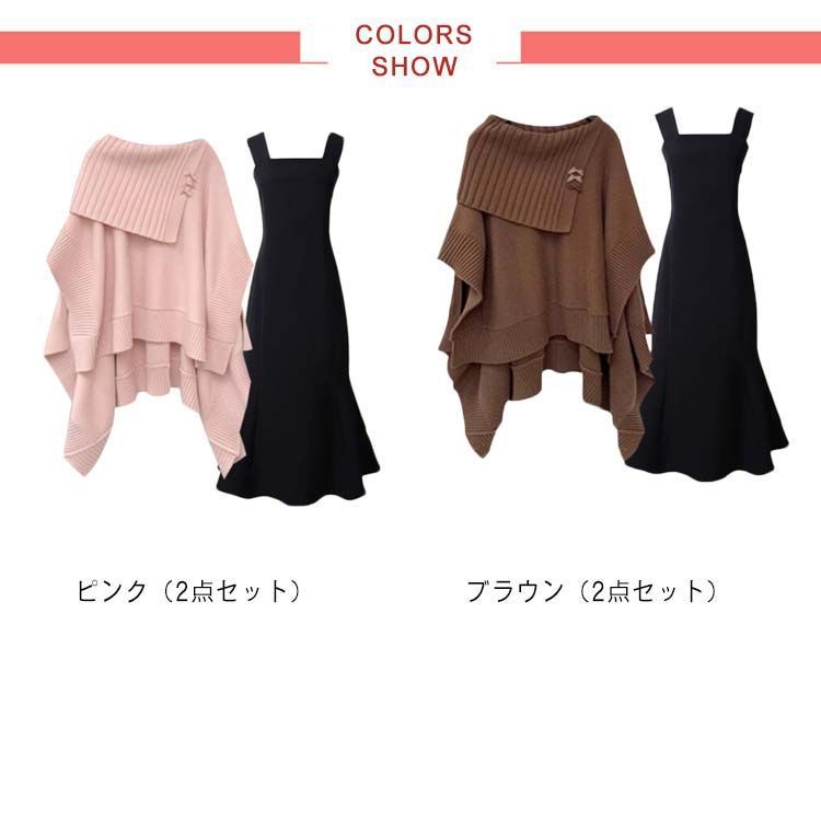 マキシワンピース 秋冬 上下セット セットアップ ニットトップス チュニック 大きいサイズ 結婚式 長袖 きれいめ タイト フォーマル 大人 上品 レディース 2点セット セーター トップス ロング丈#welle594662