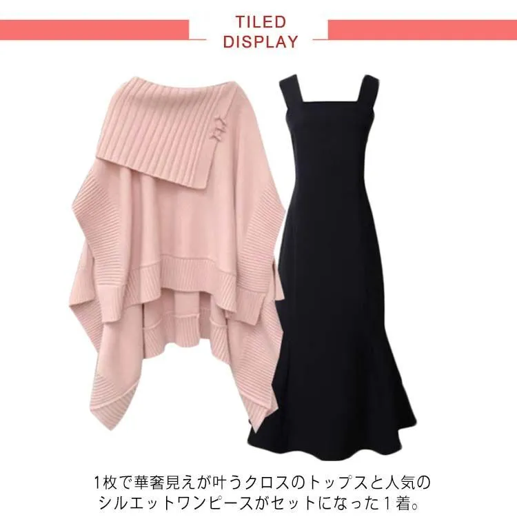 ・1枚で華奢見えが叶うクロスのトップスと人気のシルエットワンピースがセットになった1着。