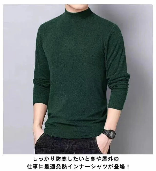 両面起毛 インナー ヒートテック タートルネック インナーシャツ 長袖 防寒着 防寒 肌着 あったか Tシャツ あったかインナー カットソー ヒートインナー 吸湿発熱 ロンT ハイネック 秋冬 裏起毛#mion0592849
