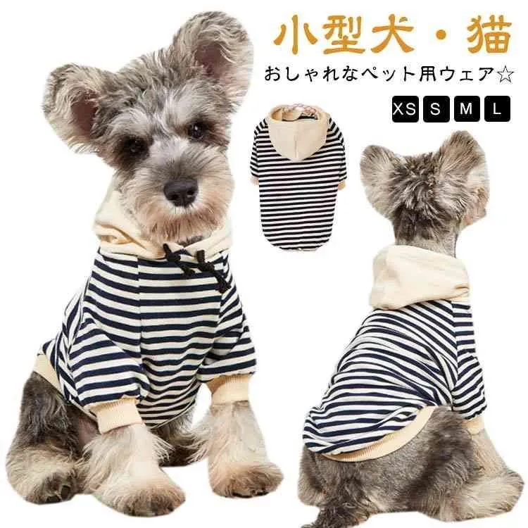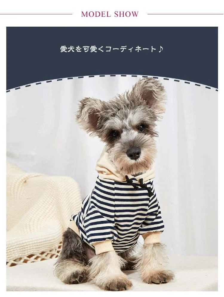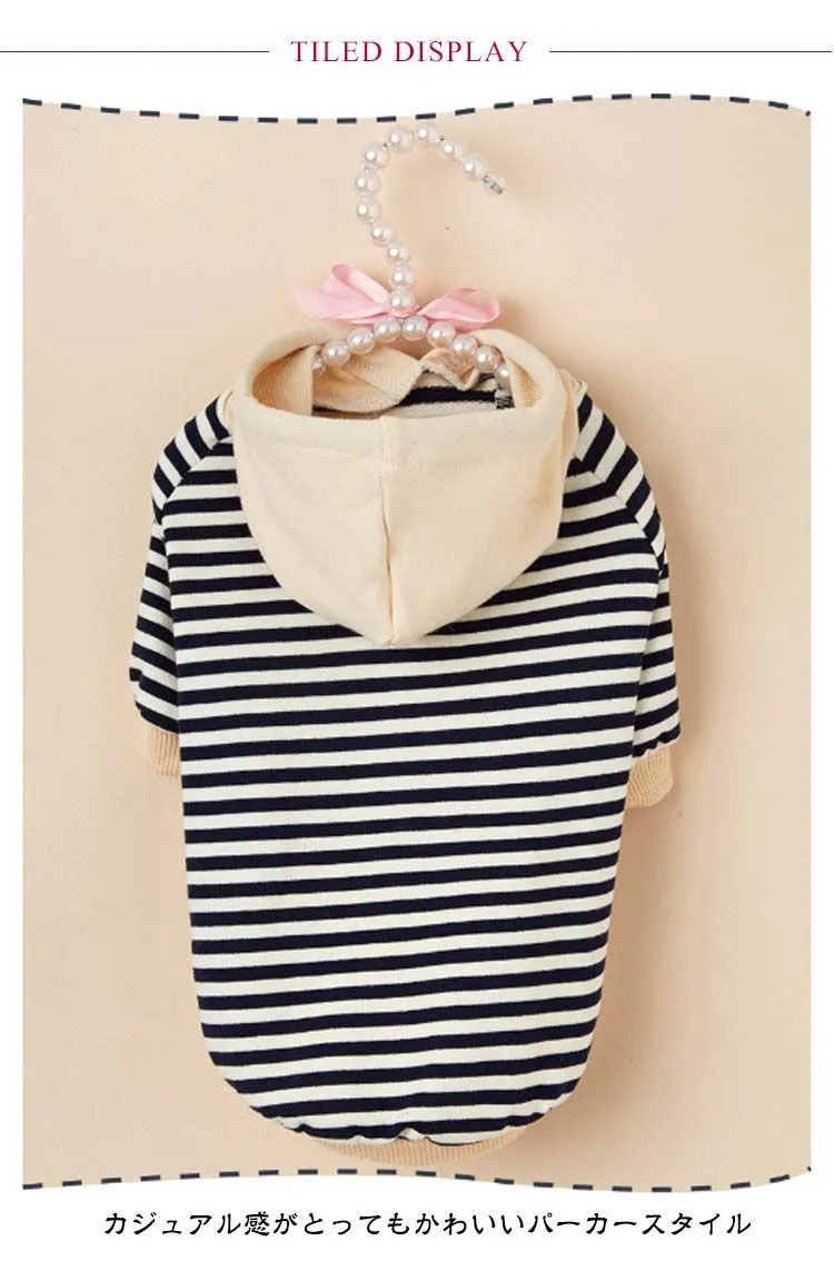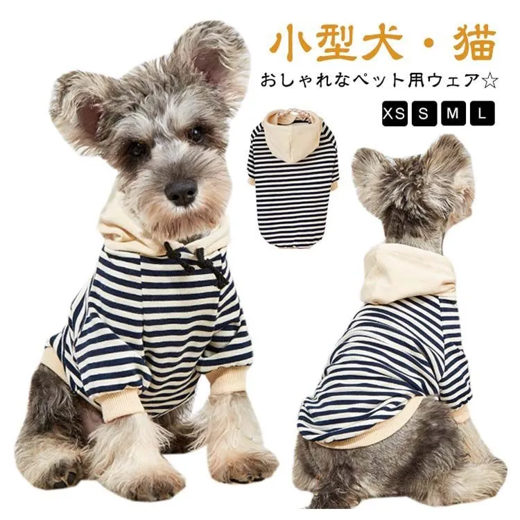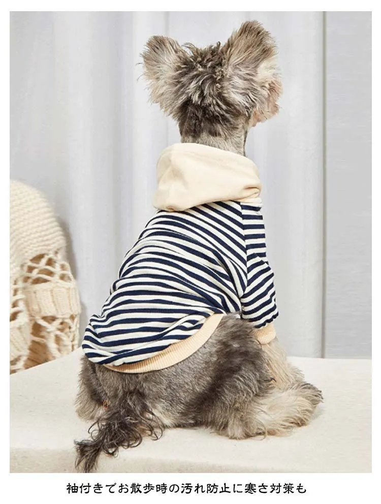 秋冬 可愛い 猫服 防寒 フード付き 小型犬 ペット服 猫 パーカー 犬の服 袖あり 犬服 秋服 犬用・猫用・キャットウェア お洒落 ボーダー 柄 着せやすい 寒さ対策 春 お散歩 ワンちゃん ネコ#sowa6585824