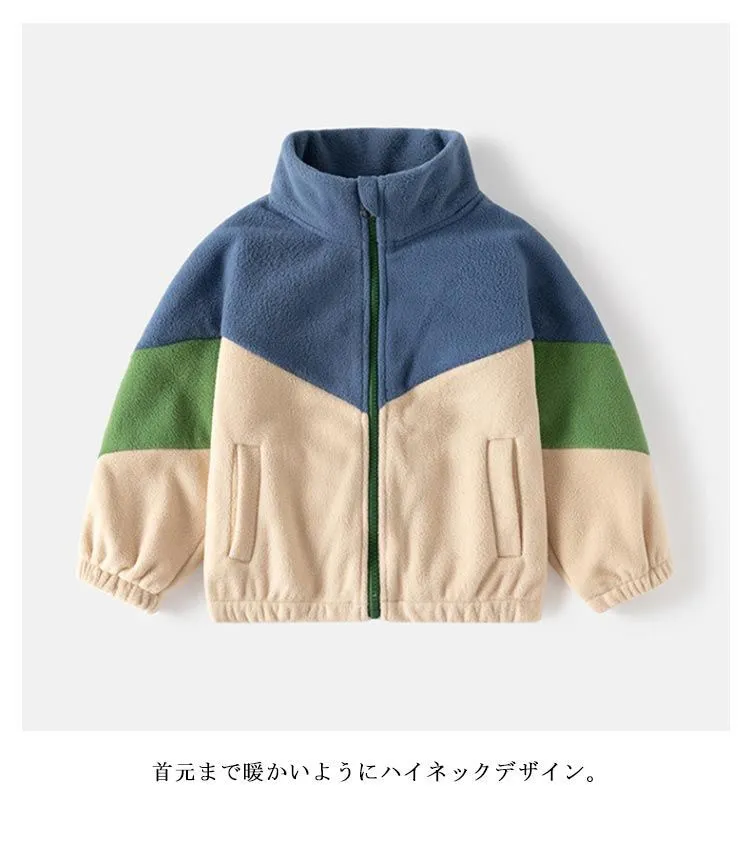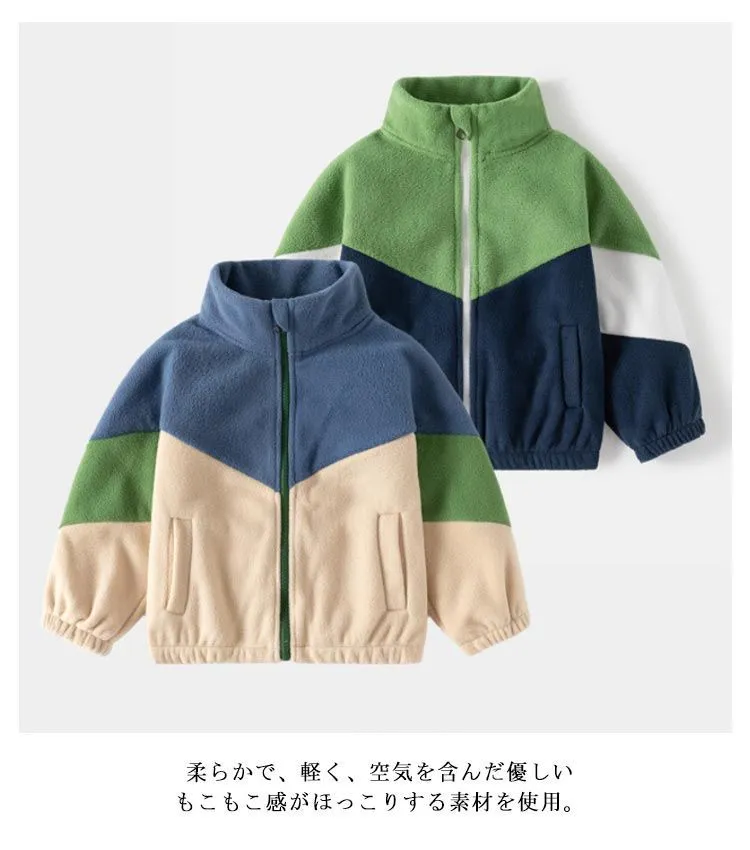 暖かい 男の子 子供服 フリースジャケット ジャンパー ジップアップ・配色・シンプル フリース アウター こども・秋服 冬服 上着 あったか 90・100・110・120・130cm・トップス ブ#sowa6585813