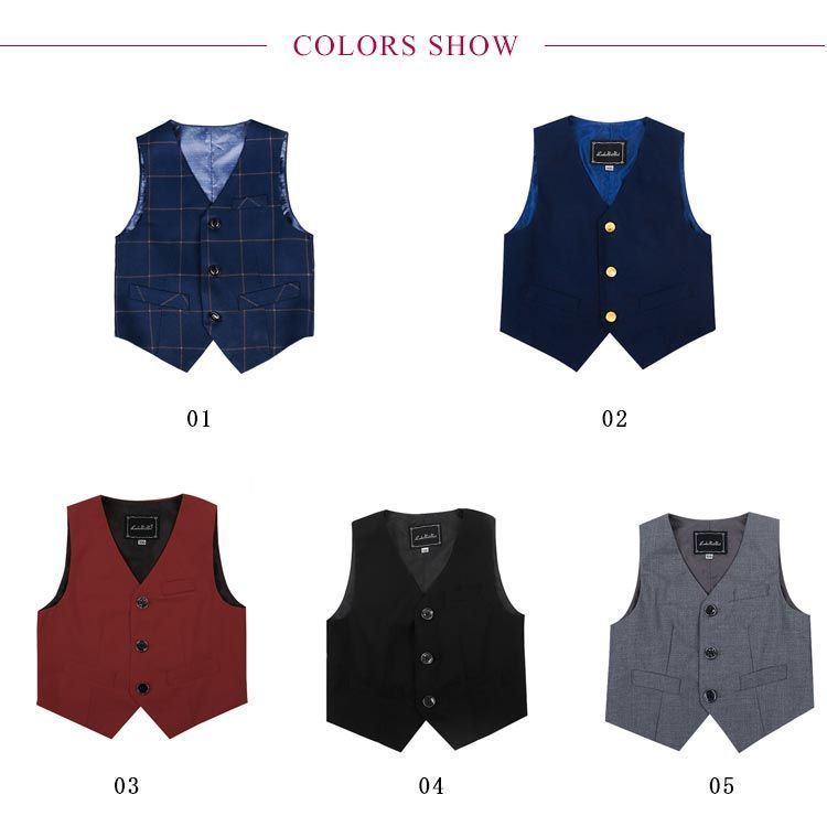 【9color】 入園・入学だけでなく結婚式や発表会など、華やかなシーンに活躍するフォーマルベスト。 別売のジャケットセットアップと合わせるとぐっと華やかでフォーマルな印象に。 通気性に優れた生地でさらっと快適、着心地や肌触の良い物を選びました。 七五三や卒入学式、発表会、ちょっとしたお出かけや、冠婚葬祭までオールマイティーに使える、普通着としてもお洒落です! メルカリ店は最大10個の選択項目しか設定できないです。 いずれの色とサイズ注文後、ご注文番号と注文希望の色/サイズをご連絡ください、こちらご連絡通りのサイズと色で手配対応可能です。