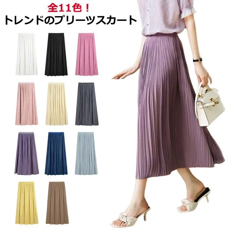 レディース 通勤 ロング丈 プリーツスカート 体型隠し ボトムス スカート フリーサイズ 無地 シンプル 細みえ プリーツスカート 大人 体型カバー きれいめ 通学 春秋冬 ウエストゴム 女性 きれい#healt602082