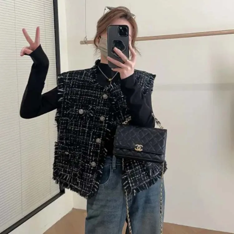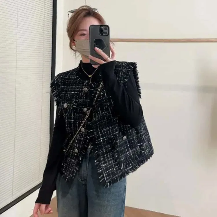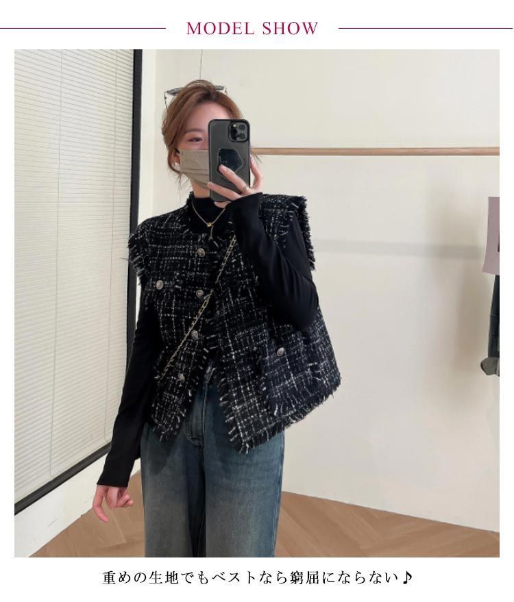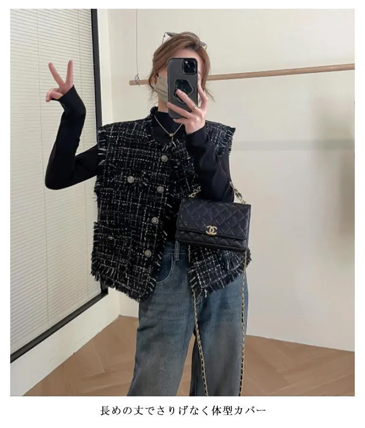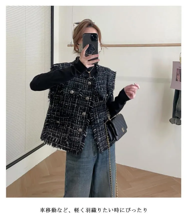 ツイード かわいい 結婚式 秋冬 体型隠し ツイード 体型カバー ベスト 高見え アウター レディース ママコーデ ママ服 通勤 通学 卒業式 入学式 ノースリーブ 入園式 卒園式 上品 オフィス 前#kitsu595342