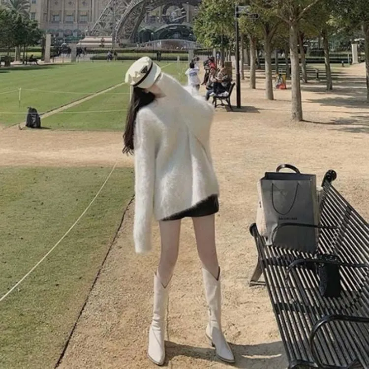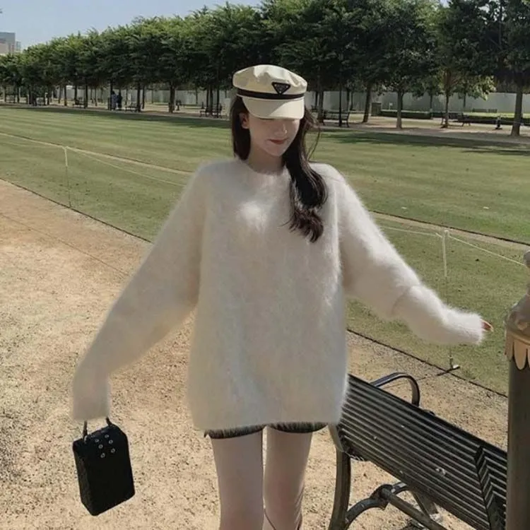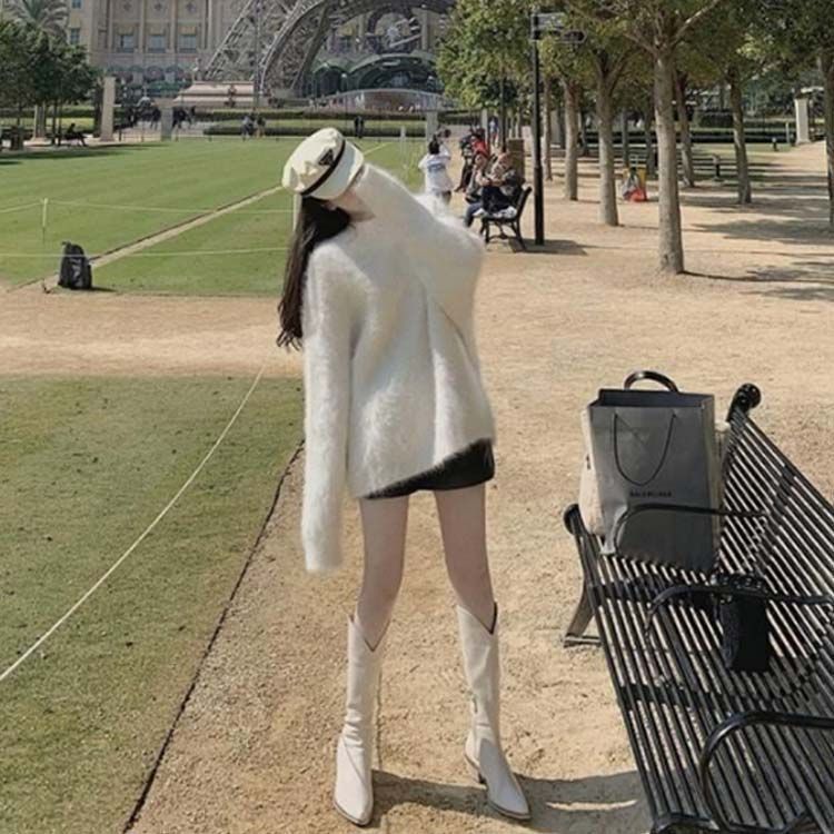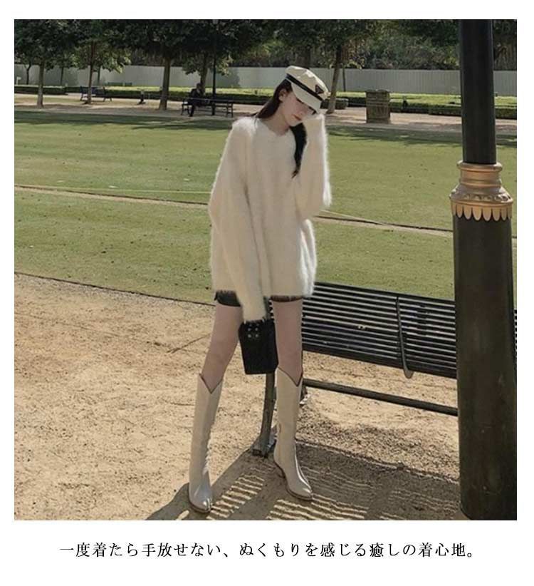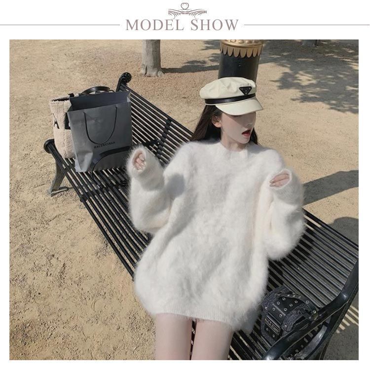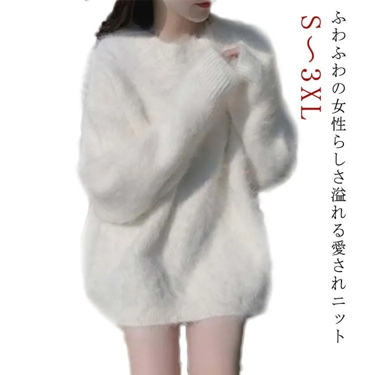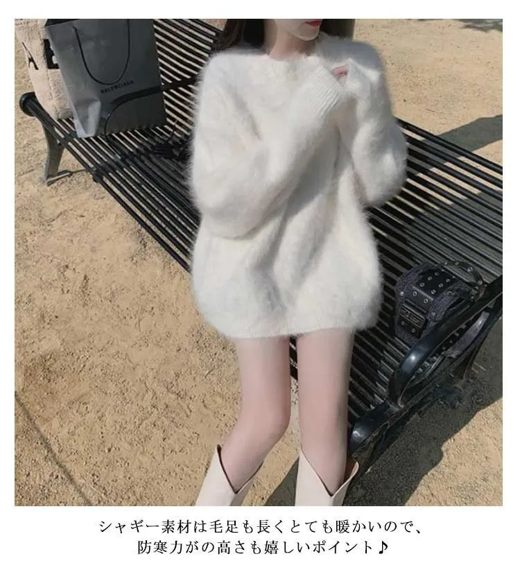 プルオーバー 無地 きれいめ シャギー レディース 秋冬 冬 秋 ハイネック もこもこ かわいい トップス インナー ゆったり ロング丈 セーター 柔らかい 上品 シャギー ふわふわ モコモコ 体型カ#conne593879