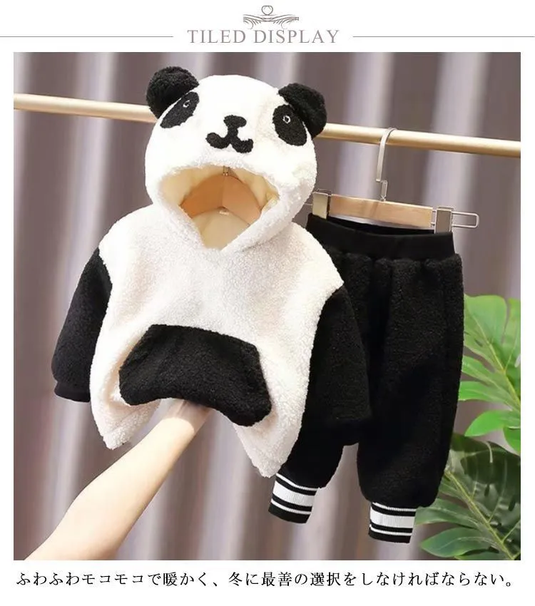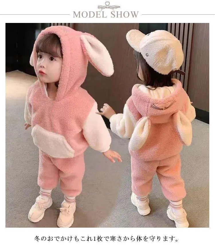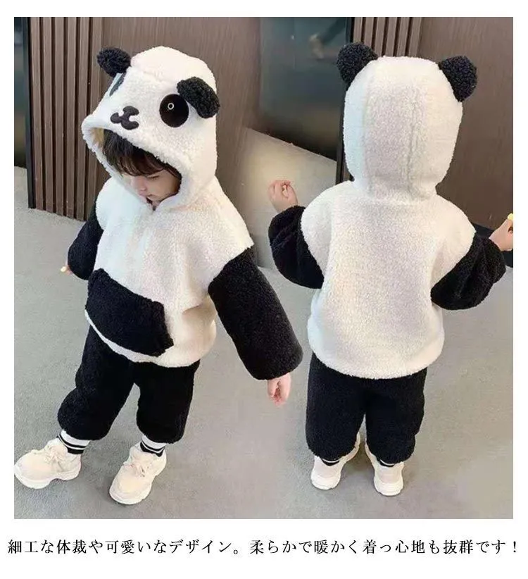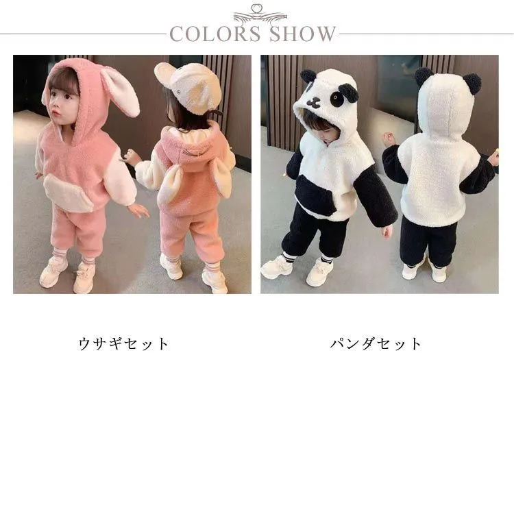アウター 子供服 キッズ セットアップ パンダ柄 ウサギ パーカー 耳付きフード パーカー 上下セット 耳付き ルームウェア 長袖 もこもこ 部屋着 ベビー服 赤ちゃん 女の子 秋冬 男の子 通学 も#conne593870