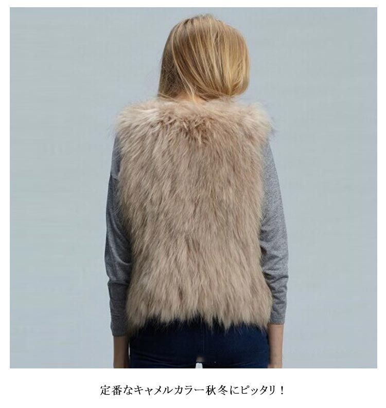 レディース 結婚式 ジレ ファーベスト 秋冬 ファー フェイクファー フェイクファー パーティー エコ ファー ベスト ジャケット ベスト ノースリーブ 袖なし ノーカラー ショート丈 キャメル#conne582597