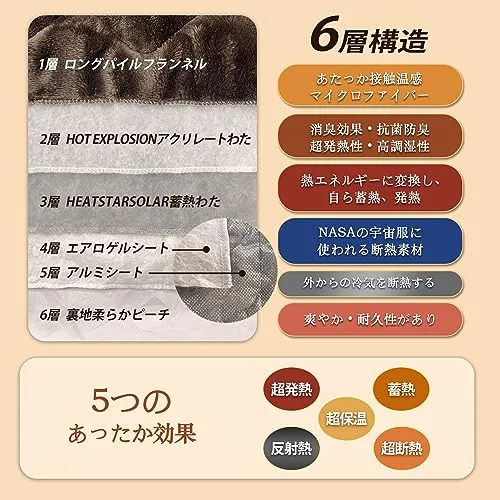 【省エネ・電気代0経済的】同じシリーズの6層構造毛布(別売り)、掛け布団(別売り)と一緒に使用すれば、より高い保温効果が期待できます。電気を使用しないので電気代もかからず、暖かく眠れ、省エネ、環境にも財布にもやさしいです。