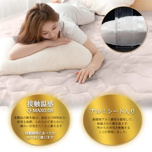 【こだわり6層構造敷きパッド】?表地「接触温感」10mm ロングパイルフランネル?「超吸湿発熱」アクリレートわた?「熱を蓄え・保温」蓄熱わた?「超断熱」エアロゲルシート?「冷気遮断」アルミシート ?「爽やか・耐久性」裏地柔らかピーチ