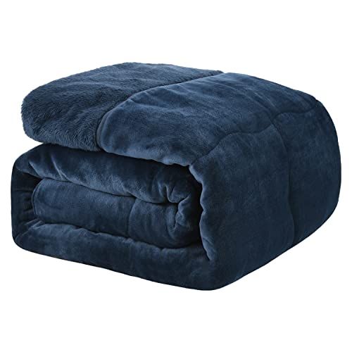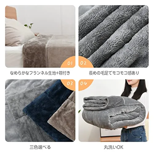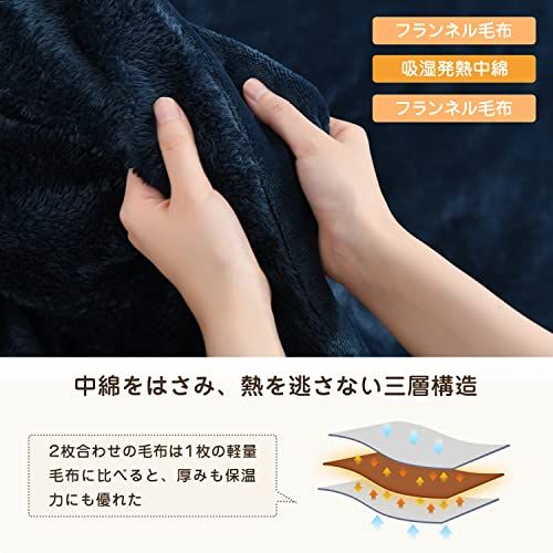 クモリ(Kumori) あったか毛布 二枚合わせ 掛け毛布 厚手 真冬もうふ ふわふわ フランネル ブランケット 吸湿発熱 静電防止 襟付き 丸洗いOK (ネイビー セミダブル・160X200cm)p