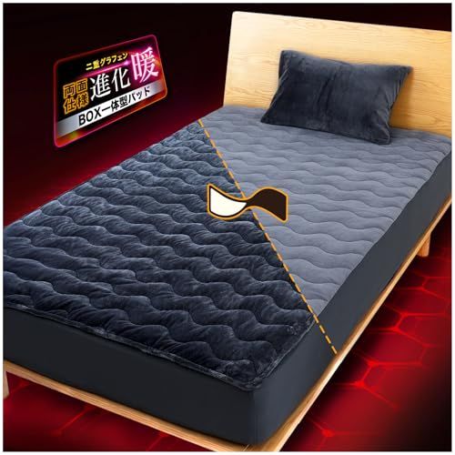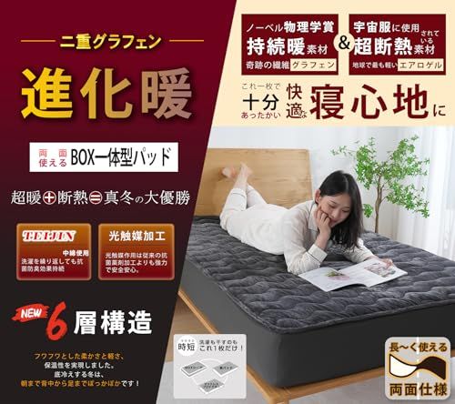 パッド一体型 ボックスシーツ 冬 ダブル【進化暖の終着点:グラフェン2重使用+宇宙服の断熱素材エアロゲル】あったか ベッドシーツ 冬 新6層構造【1枚3役 耐久性が高い ズレにくい】マットレスカバー ベッドカバー フランネル 帝人中綿 着脱楽々 時短 厚手 p