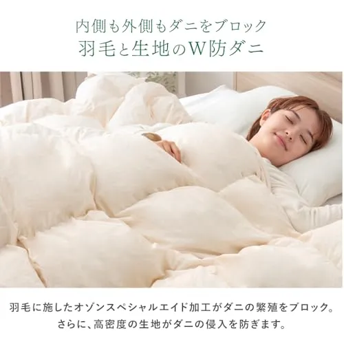 【スタッフのおすすめポイント!】・3つ星 CILレッドラベル取得 ・ホワイトダックダウン70% ・丁寧に仕上げた日本製 ・かさ高120mm以上、ダウンパワー300dp以上 ・国内パワーアップ加工でふっかふか ・SEK認定のアレルGプラスで抗菌効果 ・除菌・防ダニ・防カビ オゾンスペシャルエイド加工 ・ダニの侵入を防ぐ 高密度生地 ・コインランドリーで丸洗い&乾燥OK ・側地はピーチスキン加工でなめらかな肌触り ・羽毛の抜け出しを防止するダウンプルーフ加工 ・羽毛の膨らみを妨げない超軽量生地 ・保温力UP 立体キルト ・93万人にお届けした信頼と実績 ドリームダウン ・古い羽毛を無料回収 ・安心の7年保証