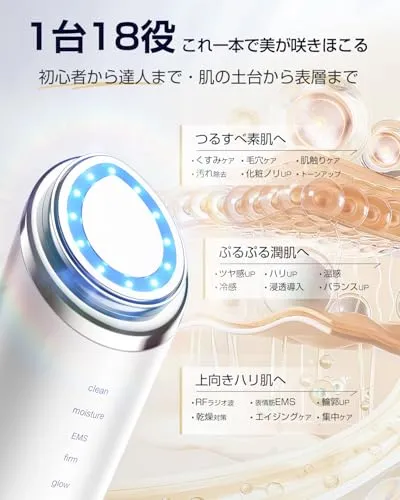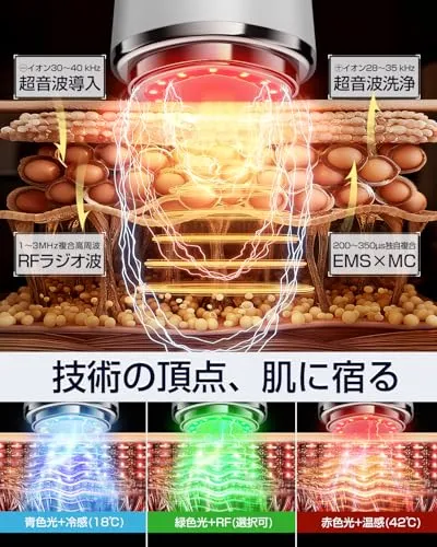 美顔器 高周波 EMS RF MC 1台18役 温冷 【2025業界初・ラジオ波・表情筋・リフトケア・毛穴洗浄・浸透導入・超音波・振動・温熱・冷却・光エステ・プロ仕様】顔 目元 口元 首元 オールインワン ビューティーデバイス 多機能美顔器 6つモード 5段p