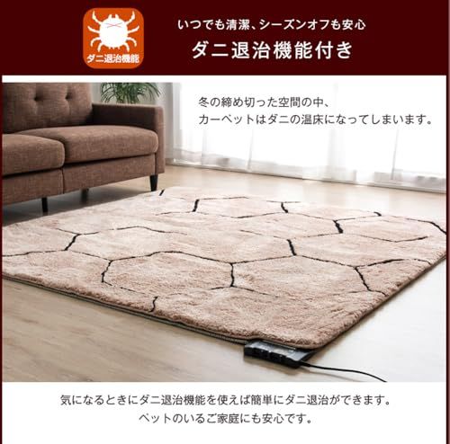 タンスのゲン ホットカーペット 168×168cm 2畳【S-JET認定】3段階 温度調節 ダニ退治機能 8時間 自動オフ タイマー付き 暖房面切り替え可能 ダニ対策 正方形 タイマー 収納 コンパクト 節電 本体 省エネ 30300018(109435)p
