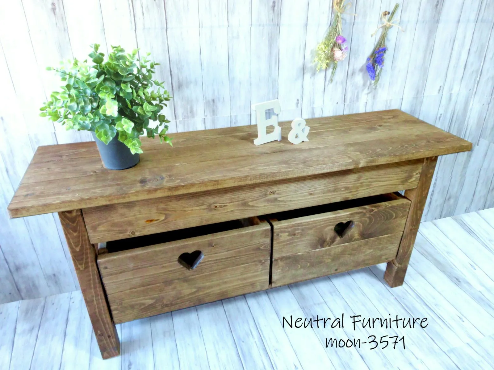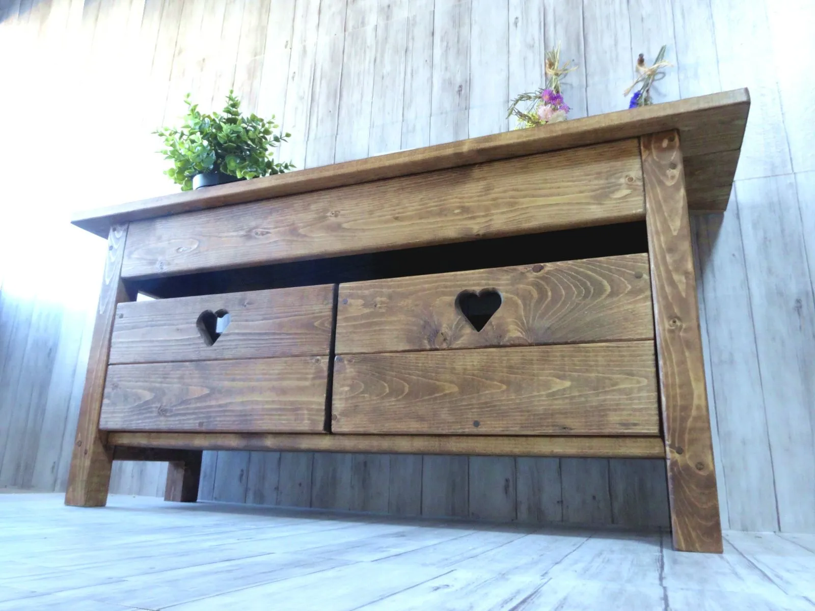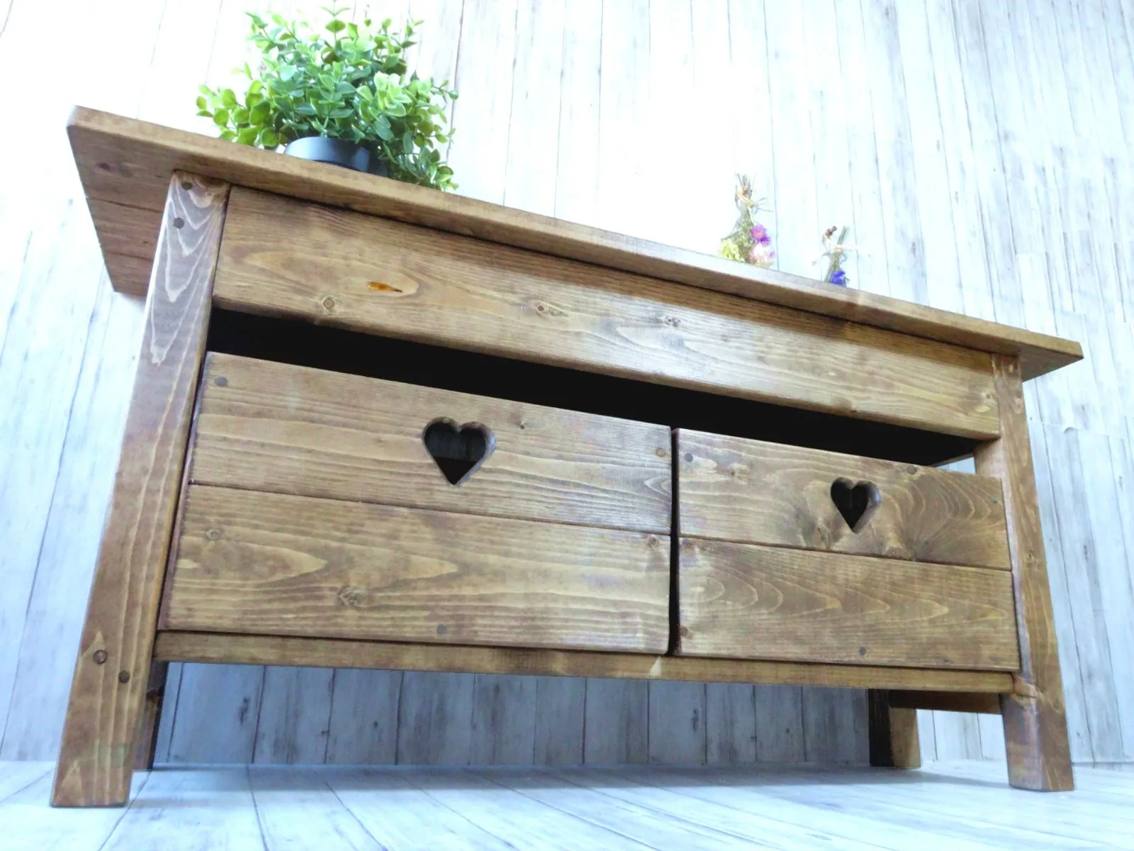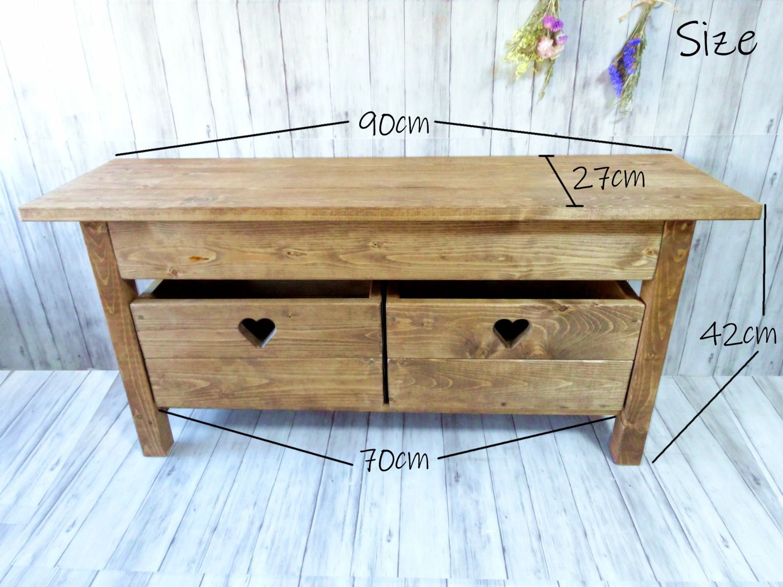 ハンドメイド 2人掛けベンチ ハートボックス (チーク色)