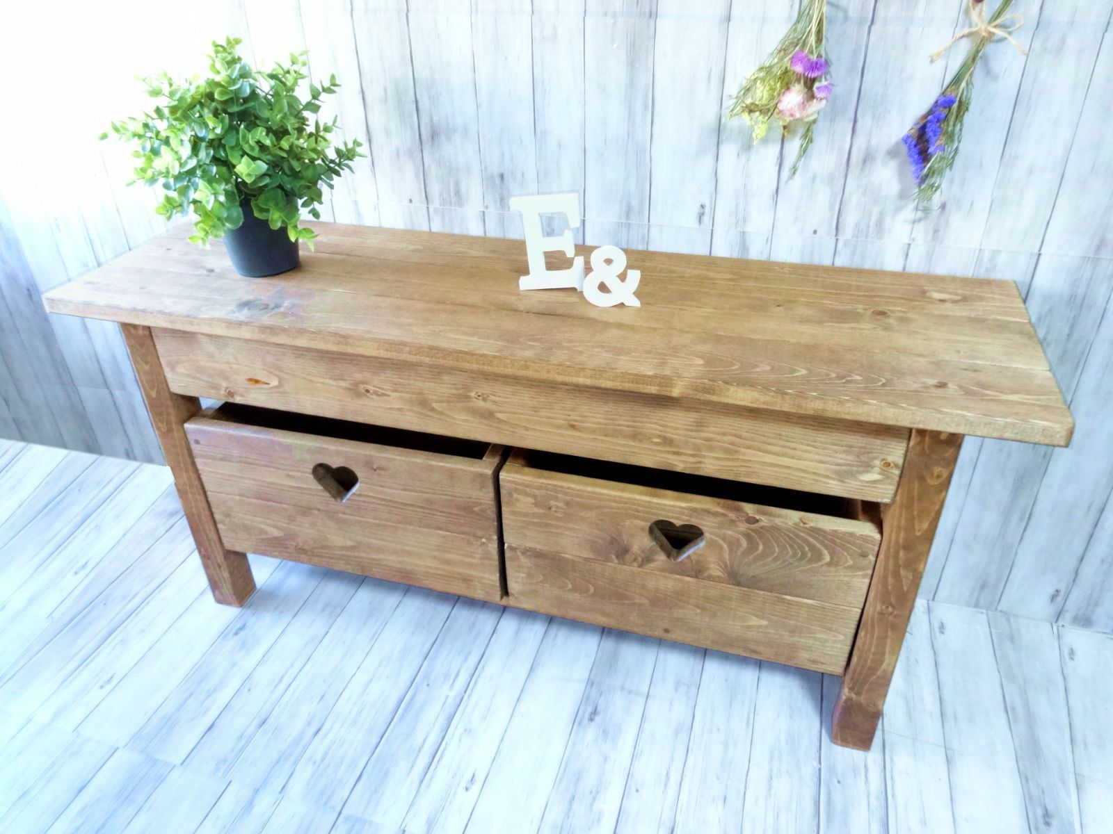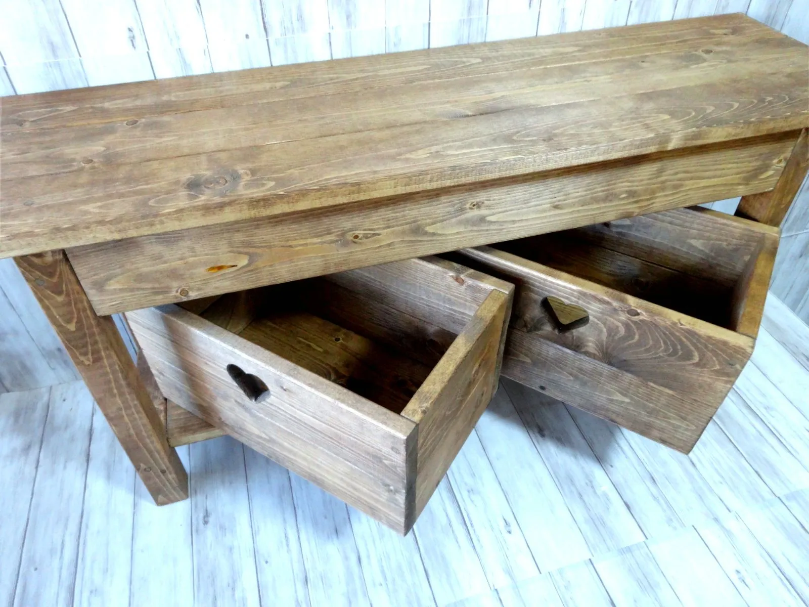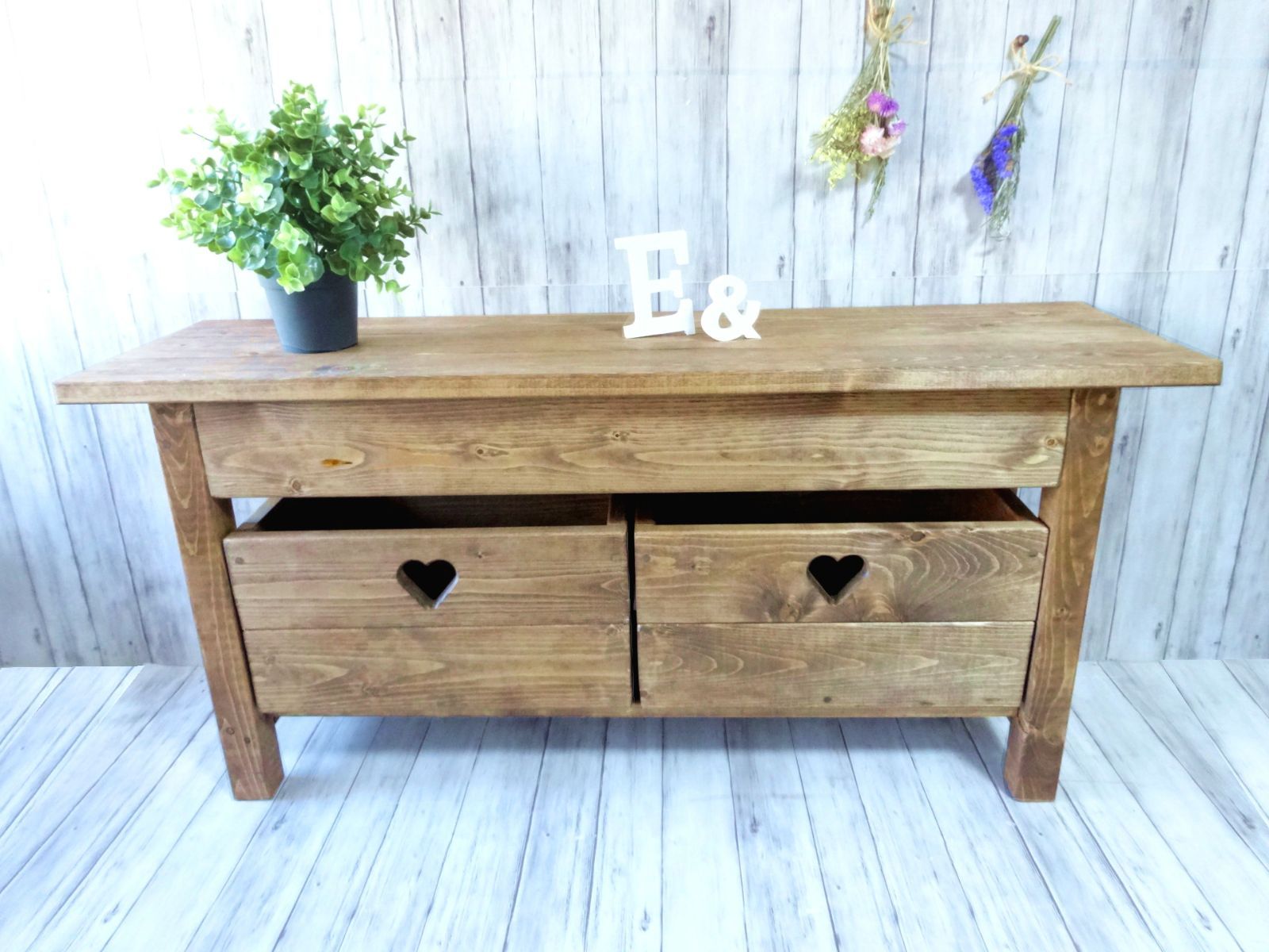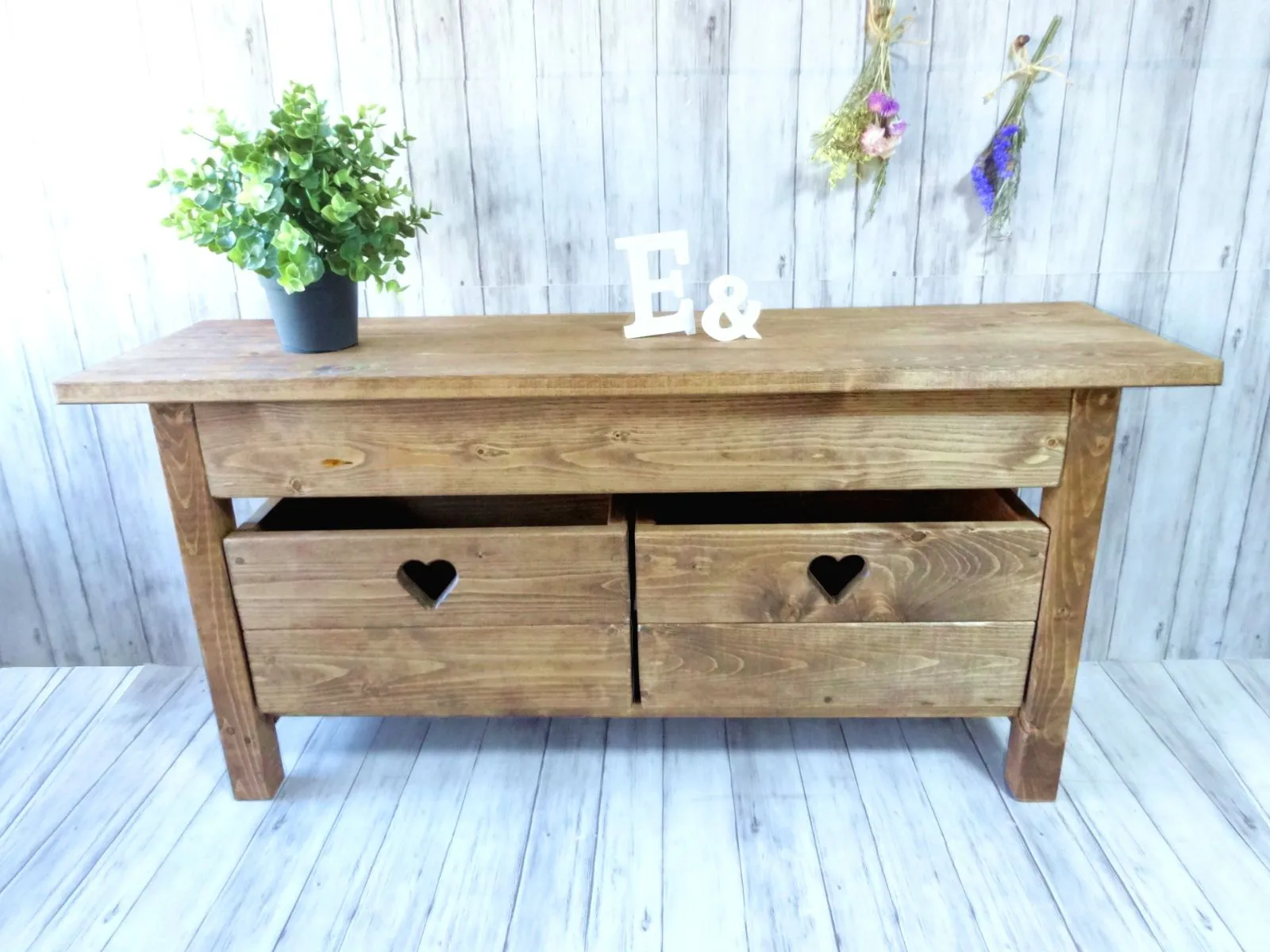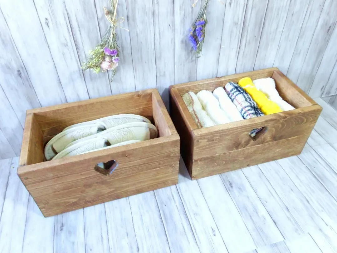 ハンドメイド 2人掛けベンチ ハートボックス (チーク色)