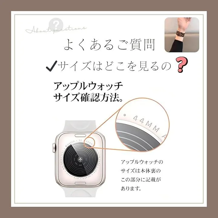 注意事項:ご購入前に、お手持ちの アップルウォッチ 裏面に記載されている「*mm」をご確認ください。