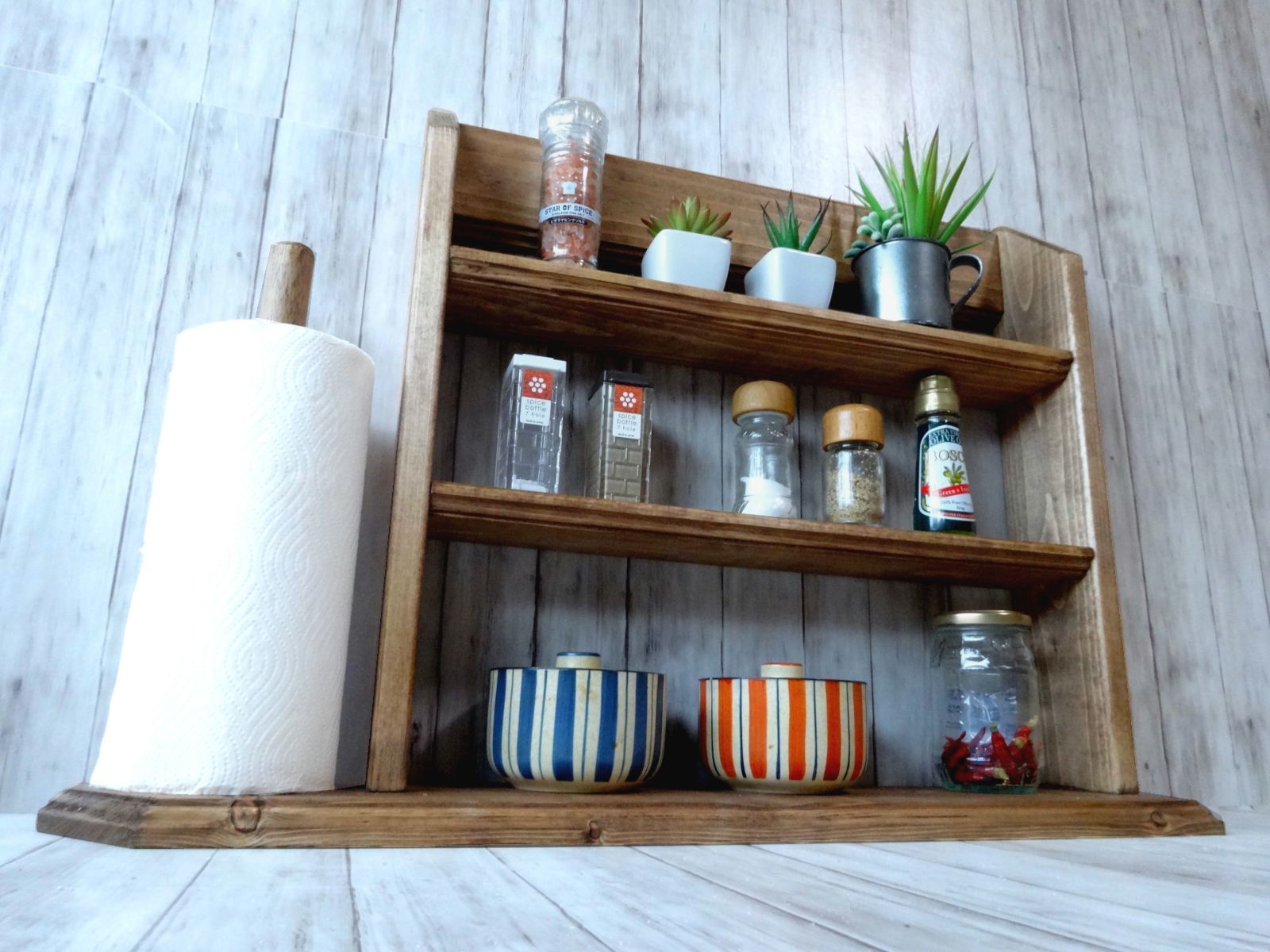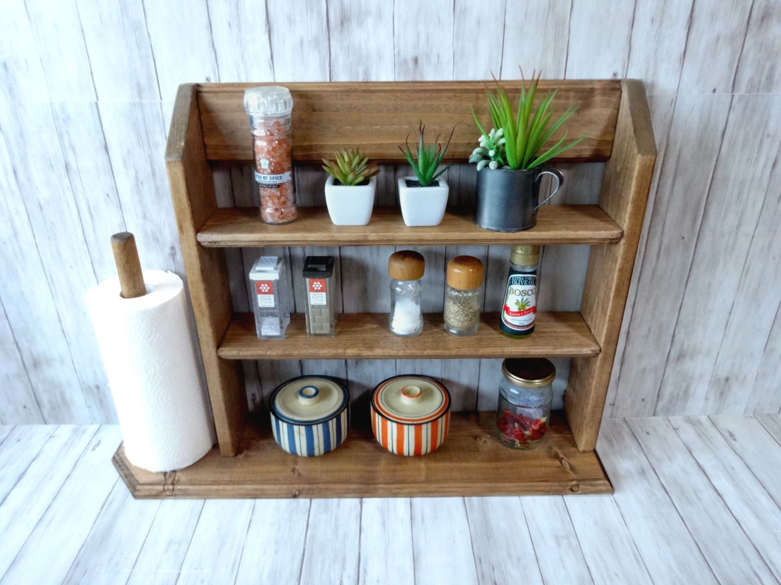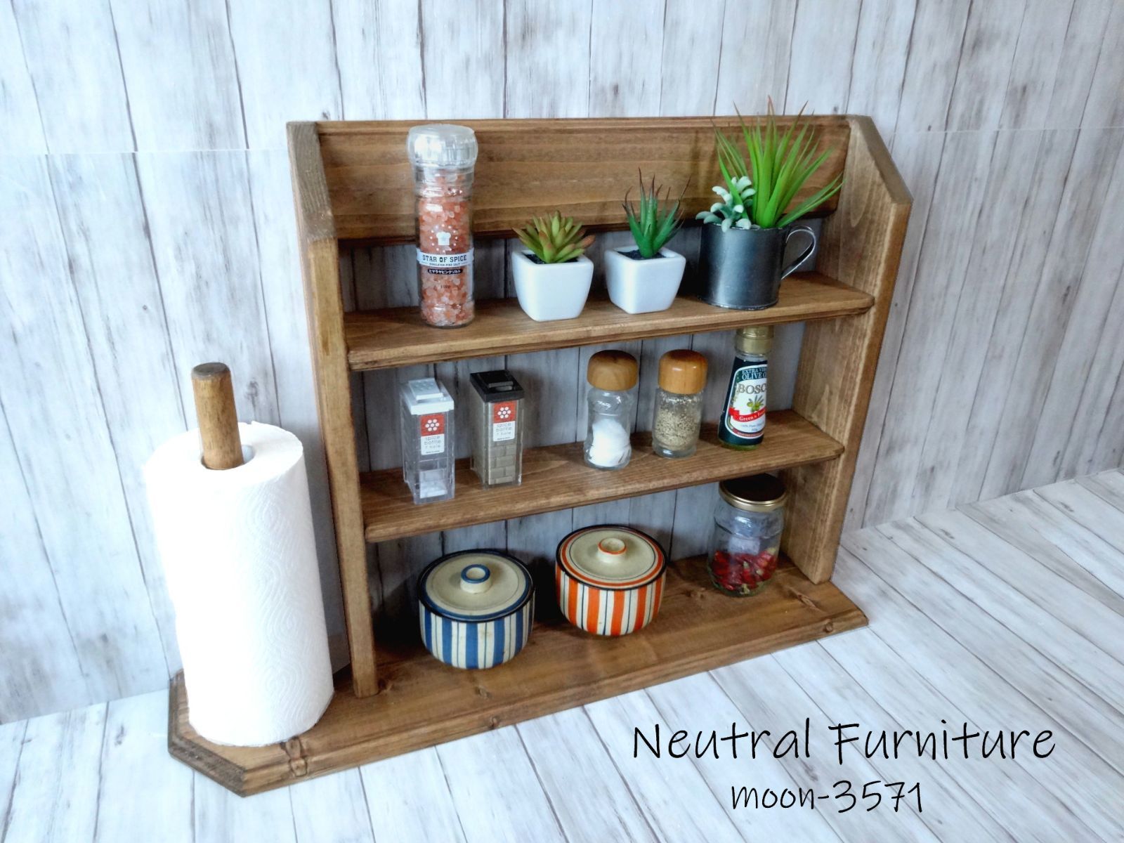 ペーパーストッカーとスパイスラックを一体させた一品です。