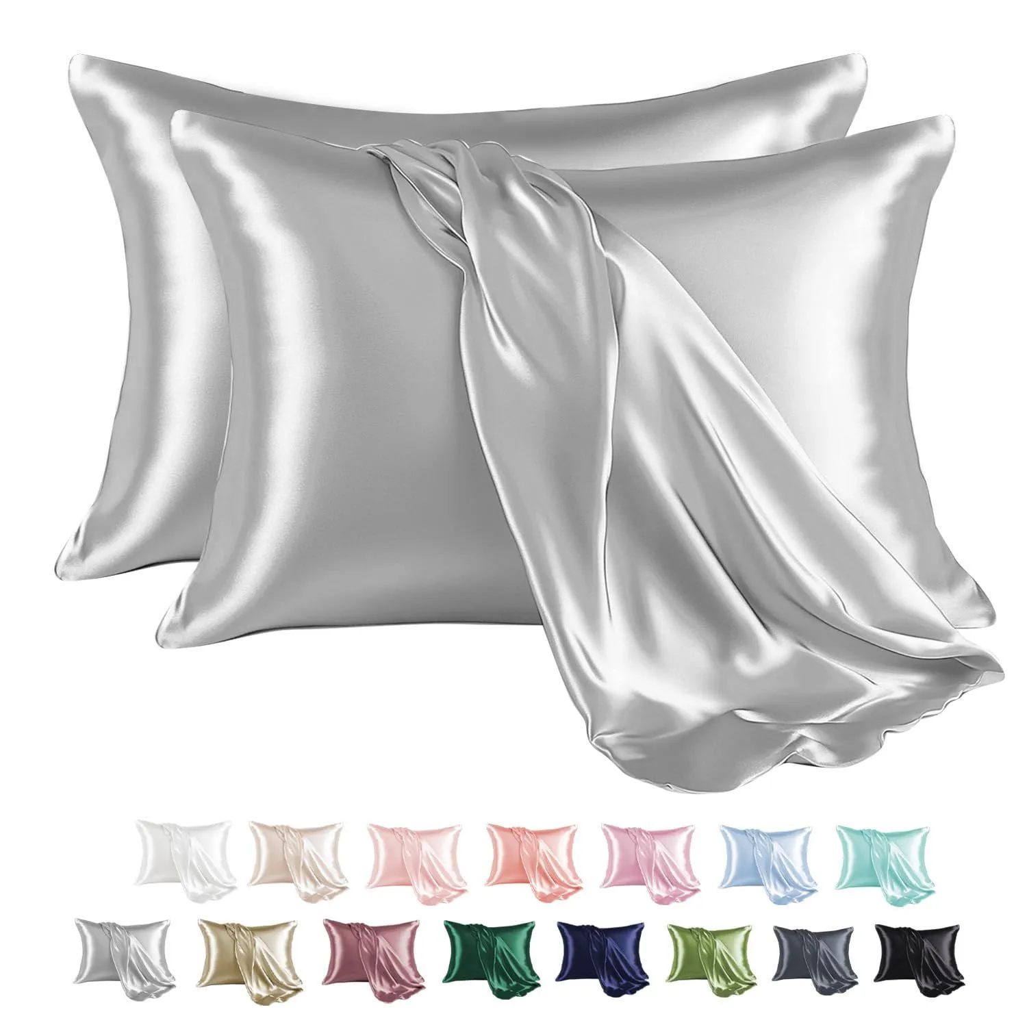 MR&HM サテン枕カバー 髪と肌用、シルクサテン枕カバー 2パック、クイーンサイズ枕カバー2枚セット 封筒留めのシルキーピローカバー(20x30、シルバーグレー)