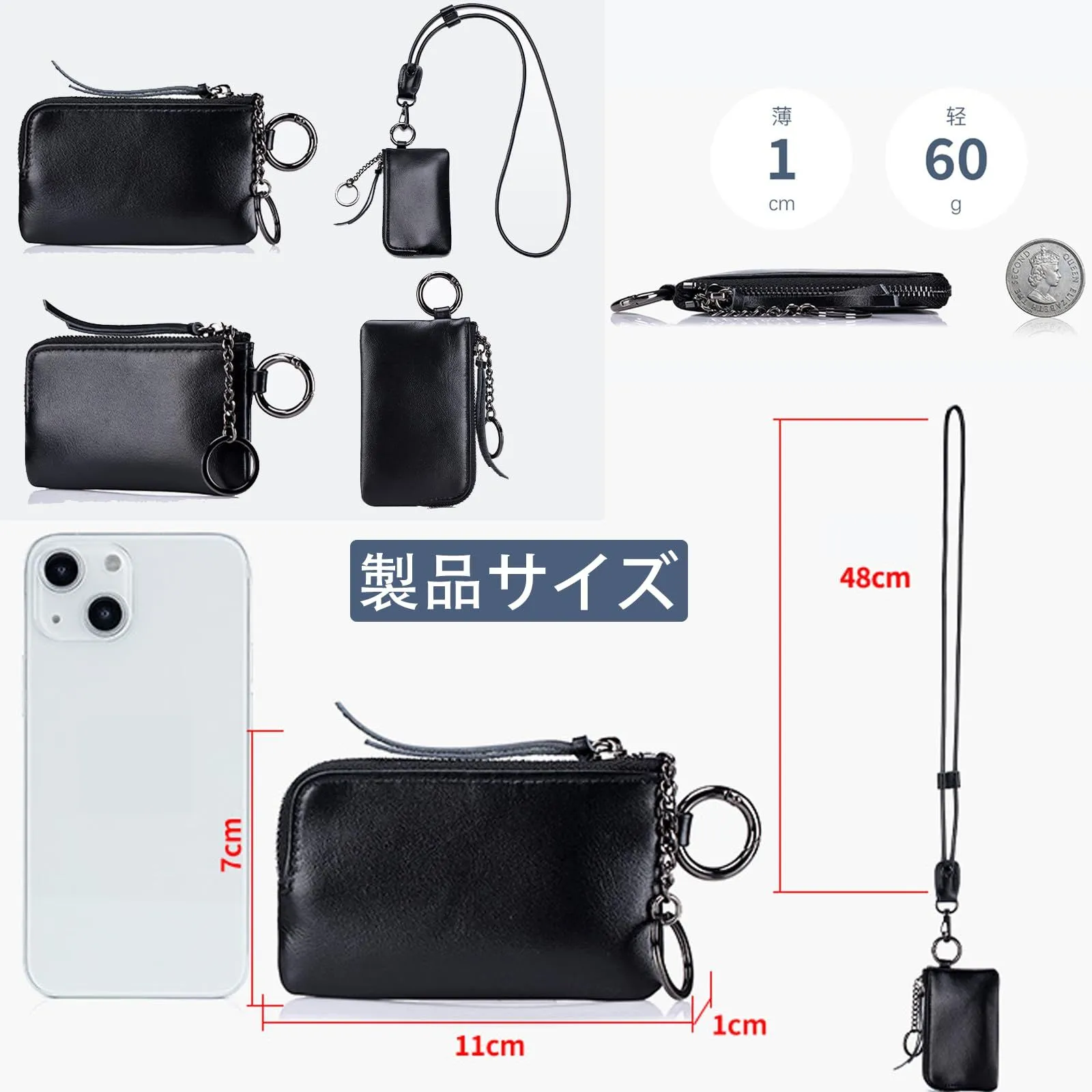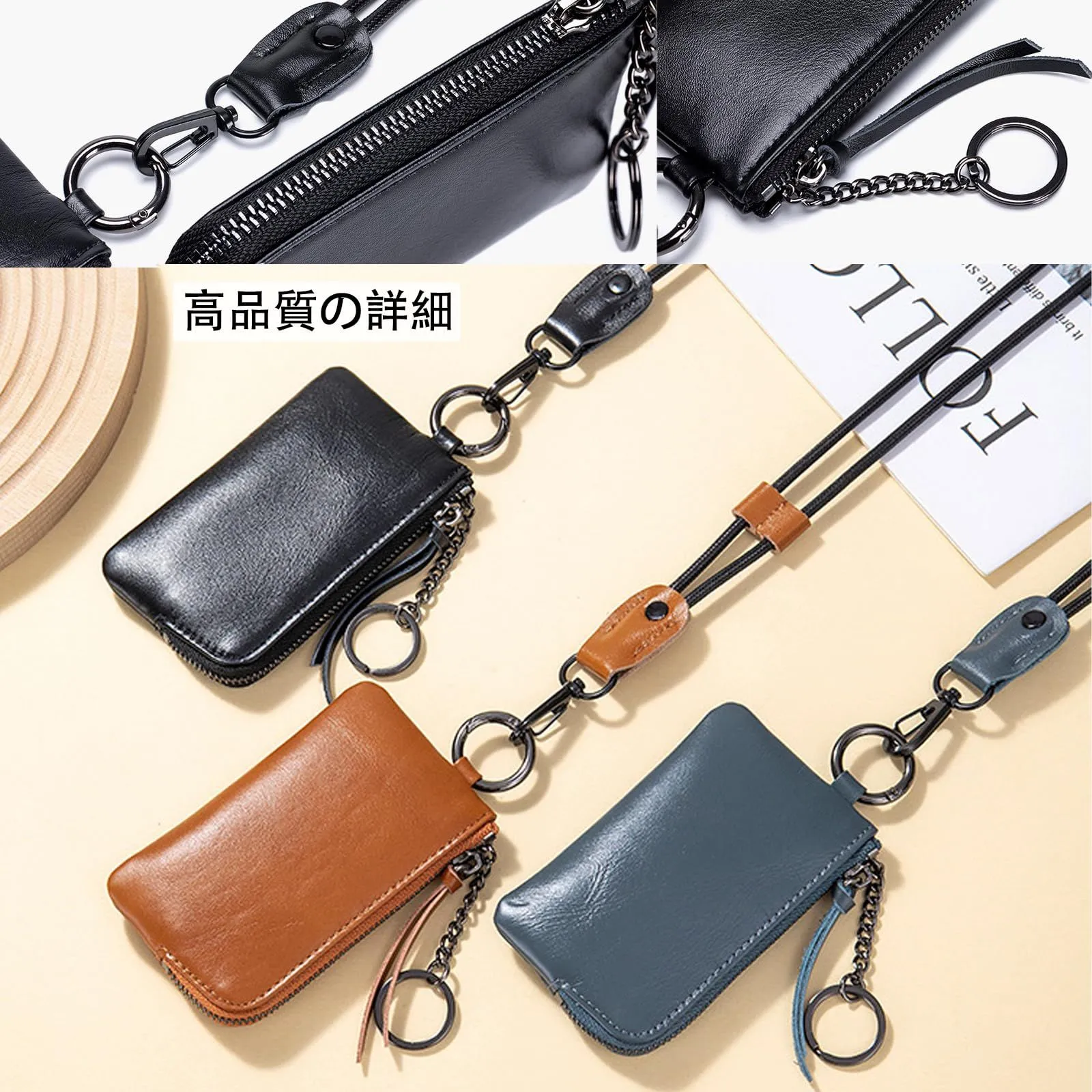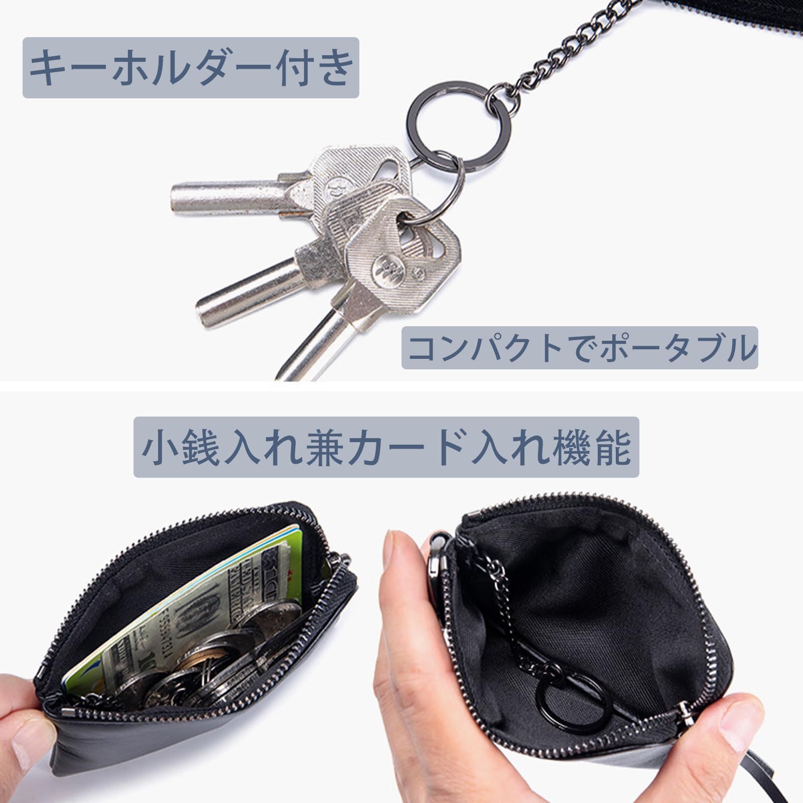 【おしゃれで実用的】シンプルでおしゃれなデザインは、メンズもレディースも使える万能アイテム。キーホルダー付きで鍵も一緒に収納可能。