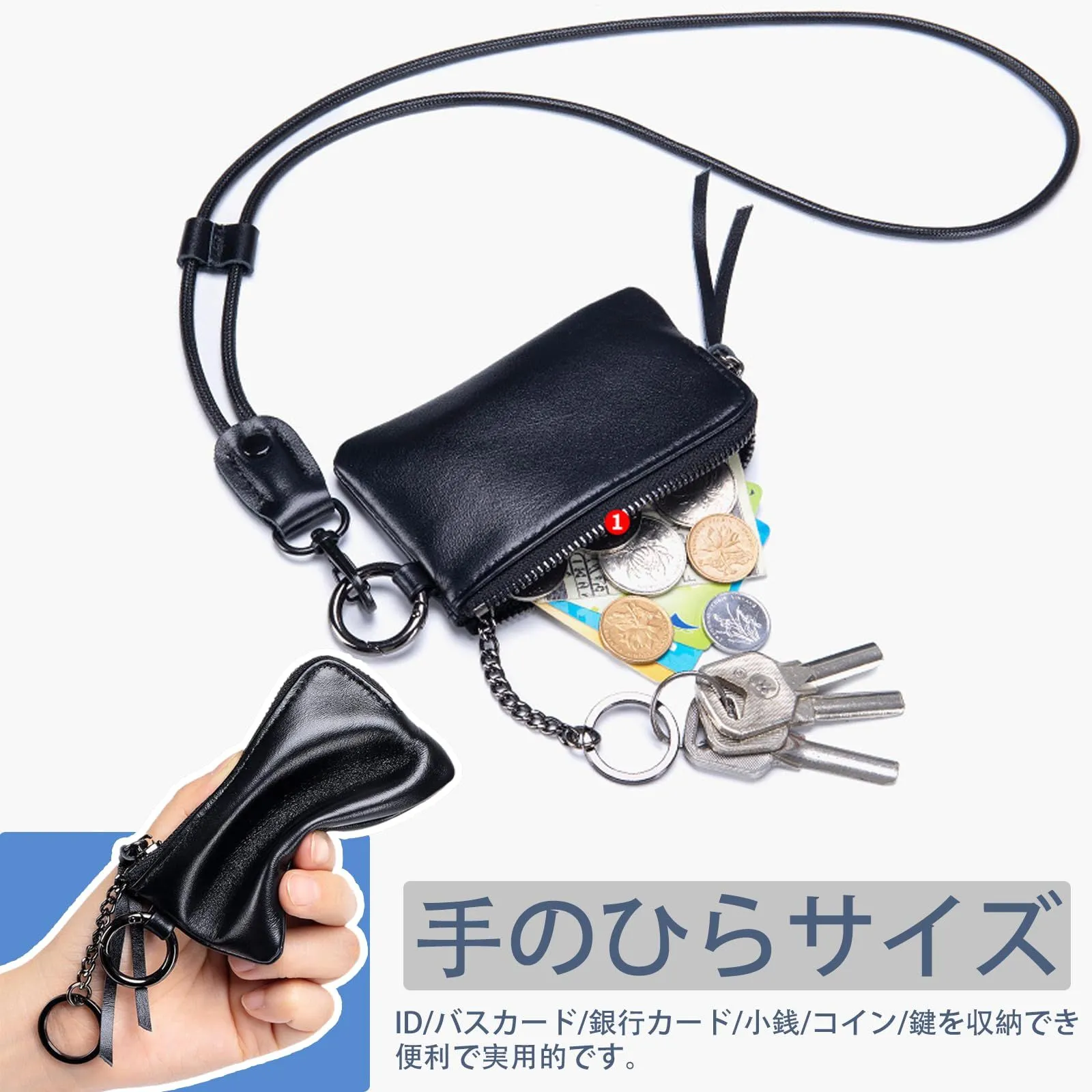 本革 パスケース メンズ レディース 首掛け 定期入れ 小銭入れ ネックストラップ付き 長さ調節可能 キーホルダー付き 軽量 コンパクト IC ID カード入れ 落下防止 おしゃれ 財布 コインケース キーケース 子供 大人 男の子 女の子 小学生 中学生 ブラウン