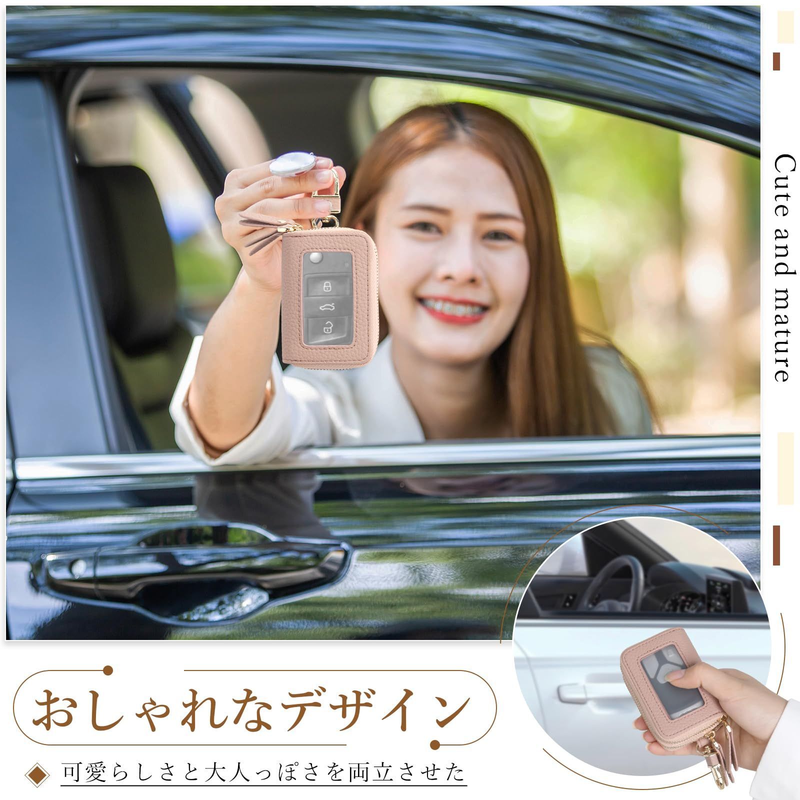 【透明窓付き】スマートキーを差し込むと透明窓からボタンが見え、透明窓から直接操作できます。 ケースを閉じたまま操作できるのでとても便利です。