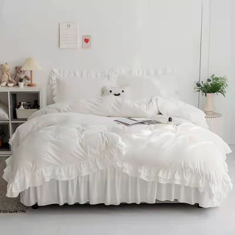 【SDセミダブル-4点セット】布団カバー:170cm×210cm ベッドスカート:120cm×200cm+40cm枕カバー:46cm×63cm 2枚