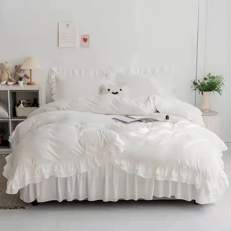 ホワイト_Sシングル-3点セット 布団カバー シングル セミダブル ダブル 3/4点セット 布団カバー セット フリル 姫風 可愛い シングル掛け布団カバー ベッドスカート 枕カバー カバーシーツセット 肌に優しい フリル付きおしゃれ 北欧 ホテル 安心 清潔 丸洗いOK (ホワイト, Sシングル-3点セット)
