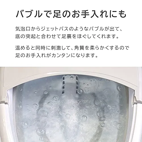 【バブル機能搭載】気泡口からジェットバスのようなバブルが出て、底の突起とともに足裏をほぐしてくれます。温めると同時に刺激を加え、角質を柔らかくすることができるので足のお手入れが簡単に行えます。