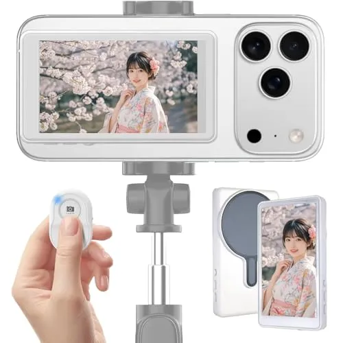 【新品】スマホ用 4K/1080p 自撮りモニター スピーカー付き iPhone/Android対応 iPhone17対応 リアルタイムミラーリングモニター Bluetoothリモコン付き Vlog/ライブ配信/TikTok/YouTube撮 cece9de1