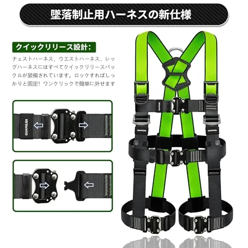 【新品】[GUANGJIA] フルハーネス安全帯 新規格 セット 墜落制止用器具 ランヤード 落下防止全身保護キット 9b1dbbf1