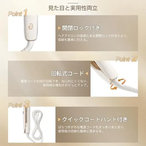 【ストレートもカールも2wayモデル&3Dクッション機能】ラウンドフォルムの設計で、ストレートヘアアイロンとしても、カールヘアアイロンとしてもよい2wayモデル。男女兼用 、ショートからロングまでに対応可能。髪をまっすぐに整えられるのはもちろん、基本のワンカールからゆるふわのコテ巻き風、トレンドのウェーブ巻き、前髪や後れももまでマルチに対応できます。さらに、やさしく滑らかな操作性プレート上下にやさしく弾むクッション機能を搭載しており、その日の気分やファッションに合わせて、髪をふわっとやさしく挟んで滑らかにスタイリングできます。