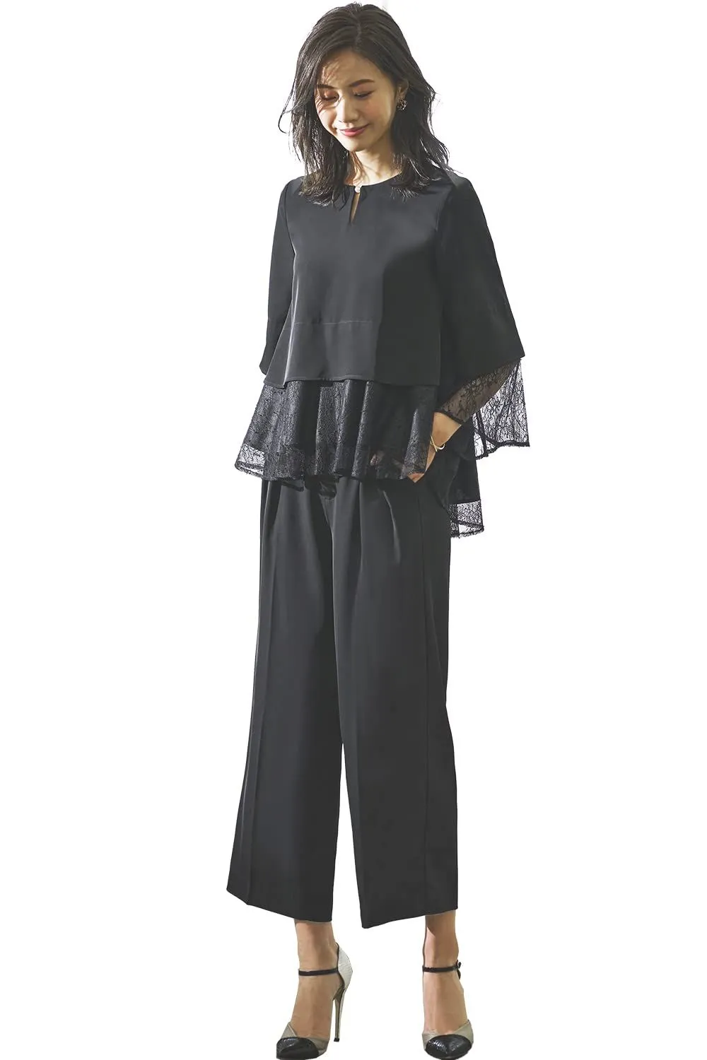 S_Bセット/ブラック(2BL) [ルイ ルエ ブティック] マルチスタイル セットアップ スーツ レディース ミセス ママ パンツスーツ セレモニースーツ パンツドレス カジュアル フォーマル 長袖 大きいサイズ 式 結婚式 オールシーズン S(7号) ブラ