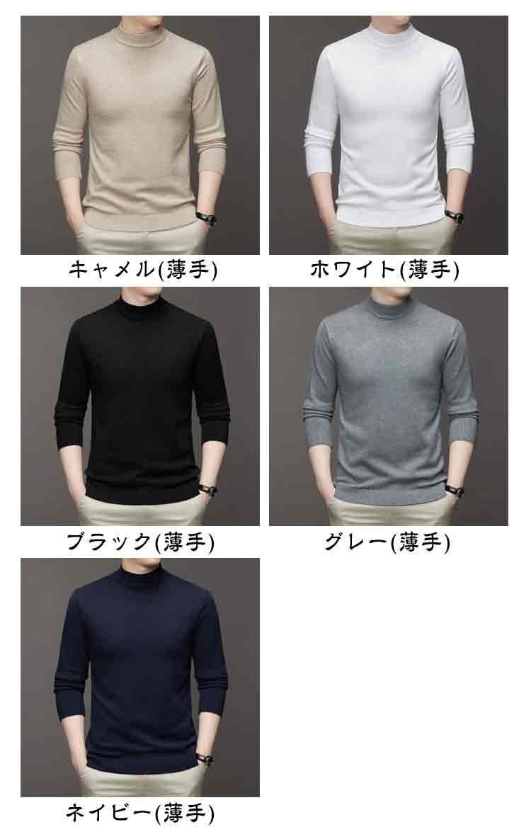 長袖ニット 裏起毛 メンズ ニット 薄手厚手2タイプ トップス ハーフタートルネック ニットセーター セーター 春秋冬 大きいサイズ 防寒 暖かい 無地 ビッグシルエット カジュアル ゴルフ#yuzuc566051