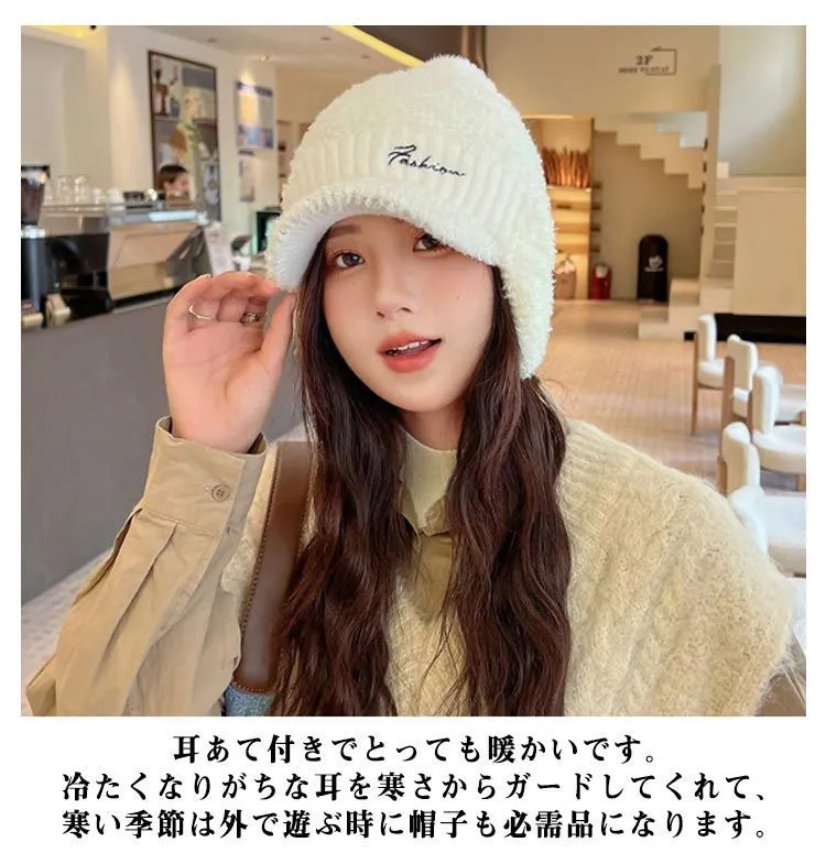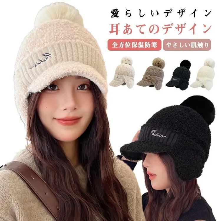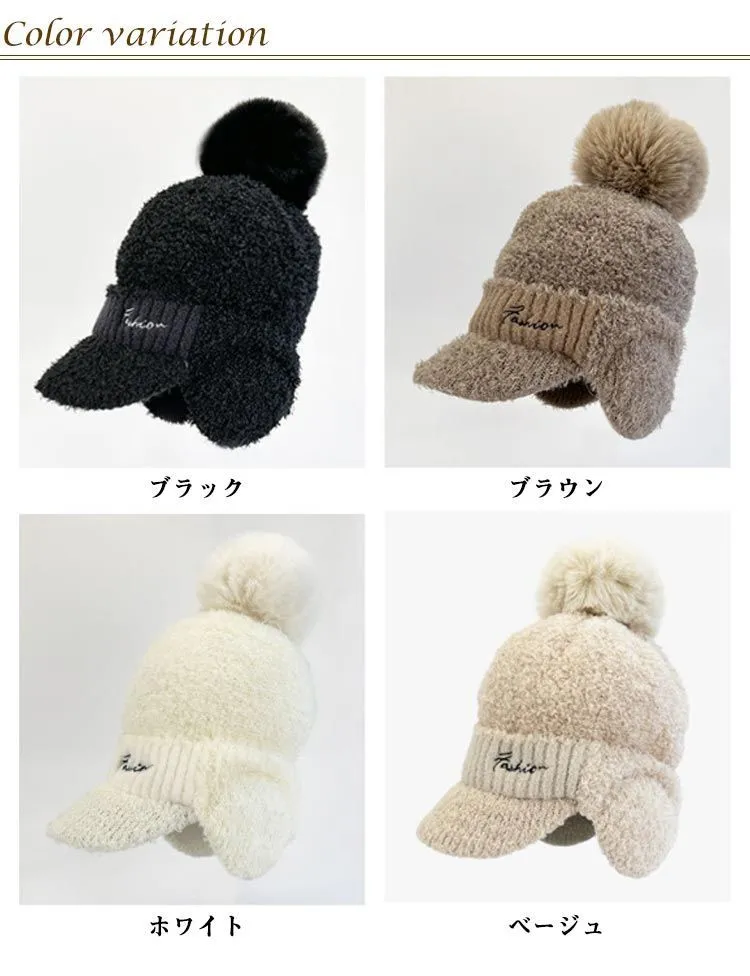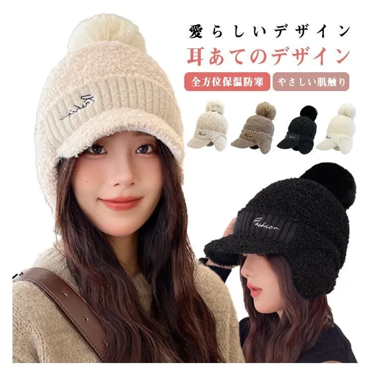 ポンポン ニット帽 レディース 柔らかい 防風 もこもこ ニット帽 防寒帽子 帽子 防寒 ボア 冬用ハット 耳あて 耳当て付き ニットキャップ 無地 かわいい 暖かい 防寒 あったかい 男女兼用 保温#yuzuc566041